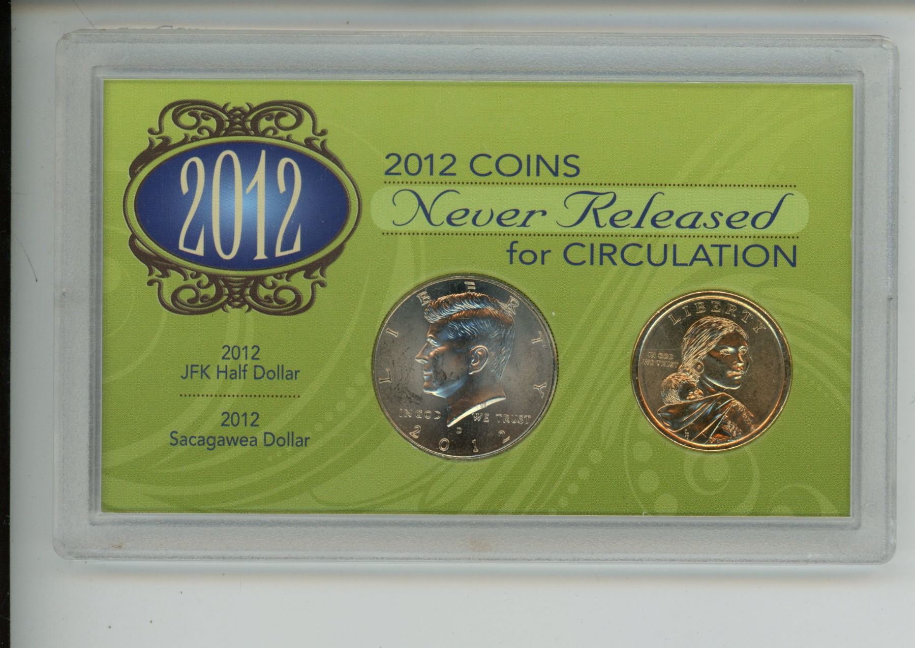 U.S. 2012 Coins Never Released for Circulation. Includes 2012 JFK Half Dollar & 2012 Sacagawea Dollar.
