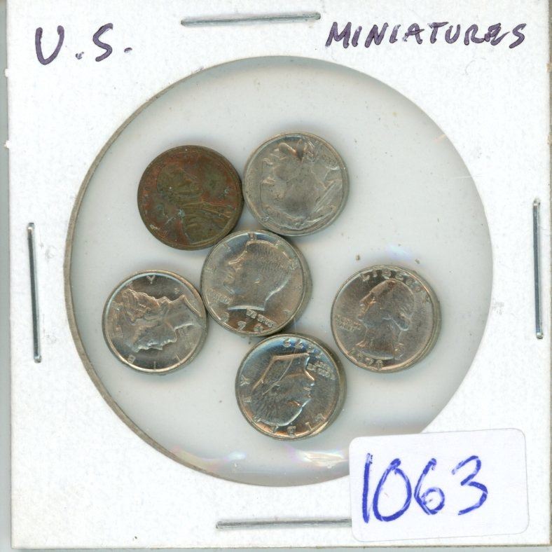 U.S. 6 different miniature U.S. coins including Lincoln Cent, Buffalo Nickel, Mercury Dime, Washingt