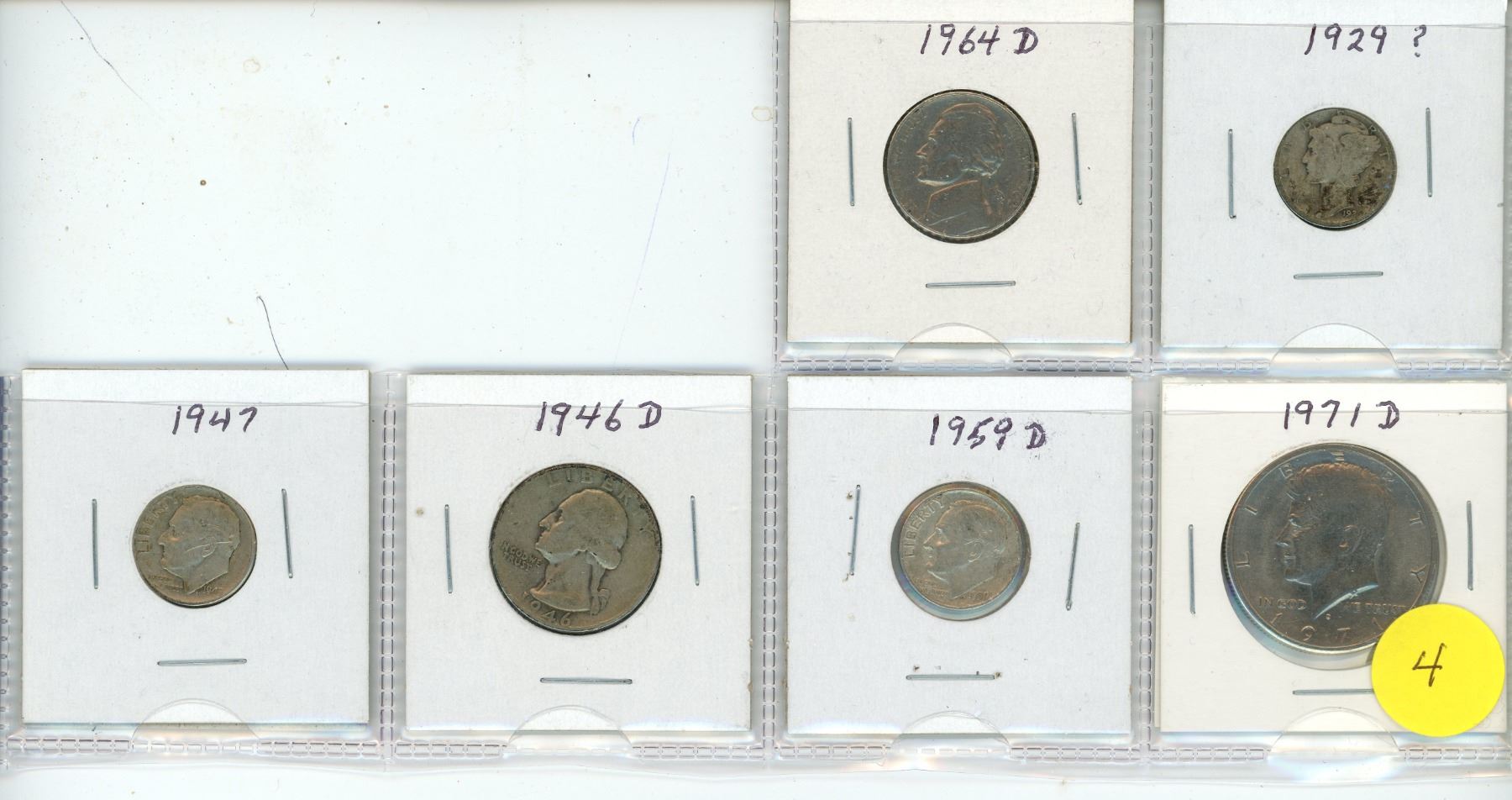 U.S.A. Coins - 19292,1947, 1959d Dimes -1964d Nickel-1946d Quarter-1971d Half Dollar