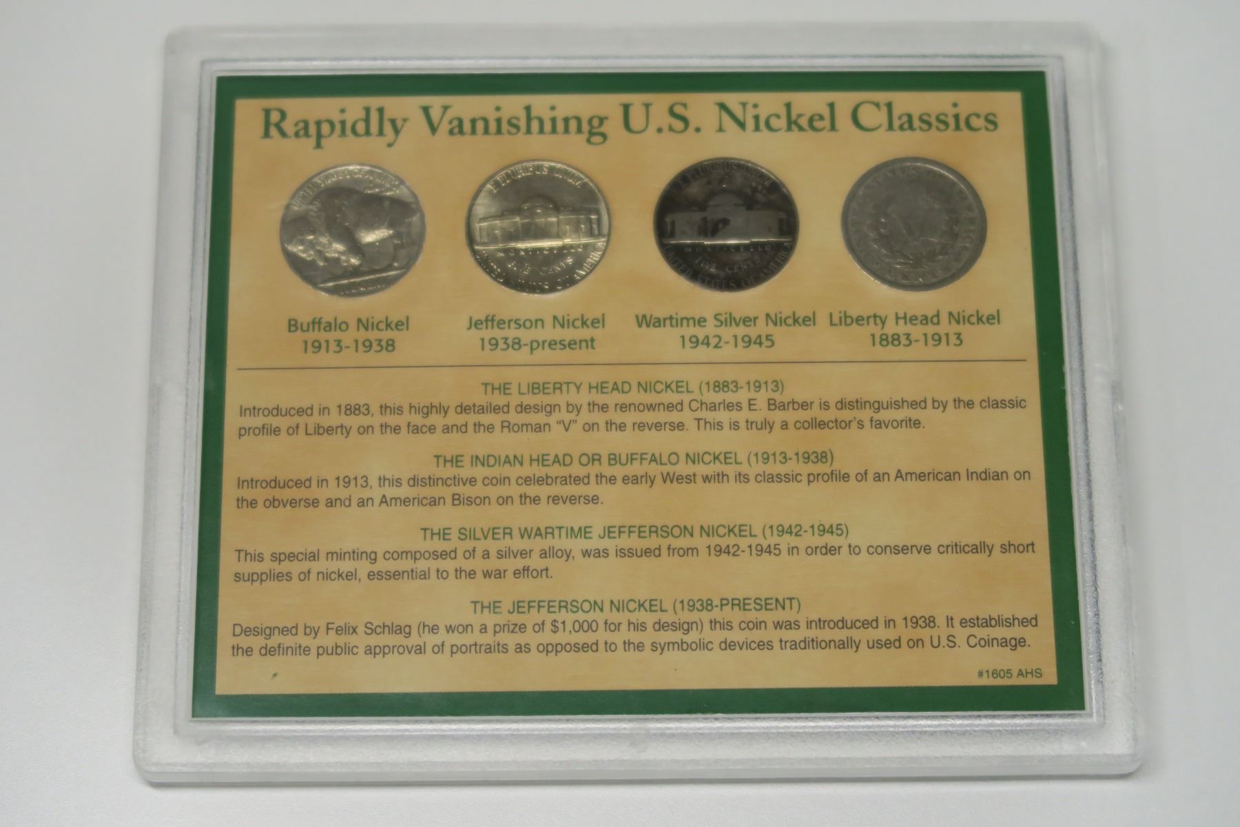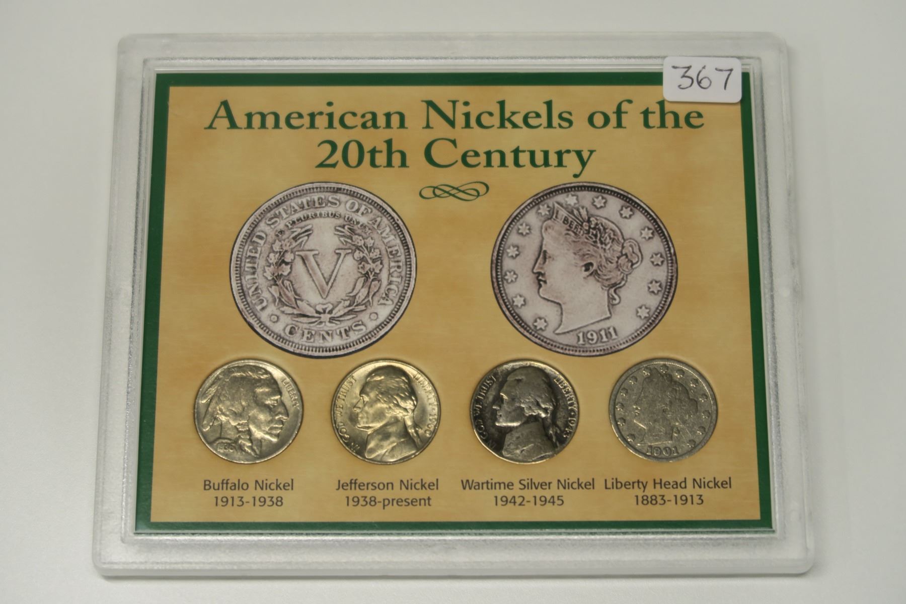 U.S. American Nickels of the 20th Century. 4-coin set Includes 1901 Liberty Head, 1936 Buffalo, 1943P Silver Wartime & 1960 Jefferson.