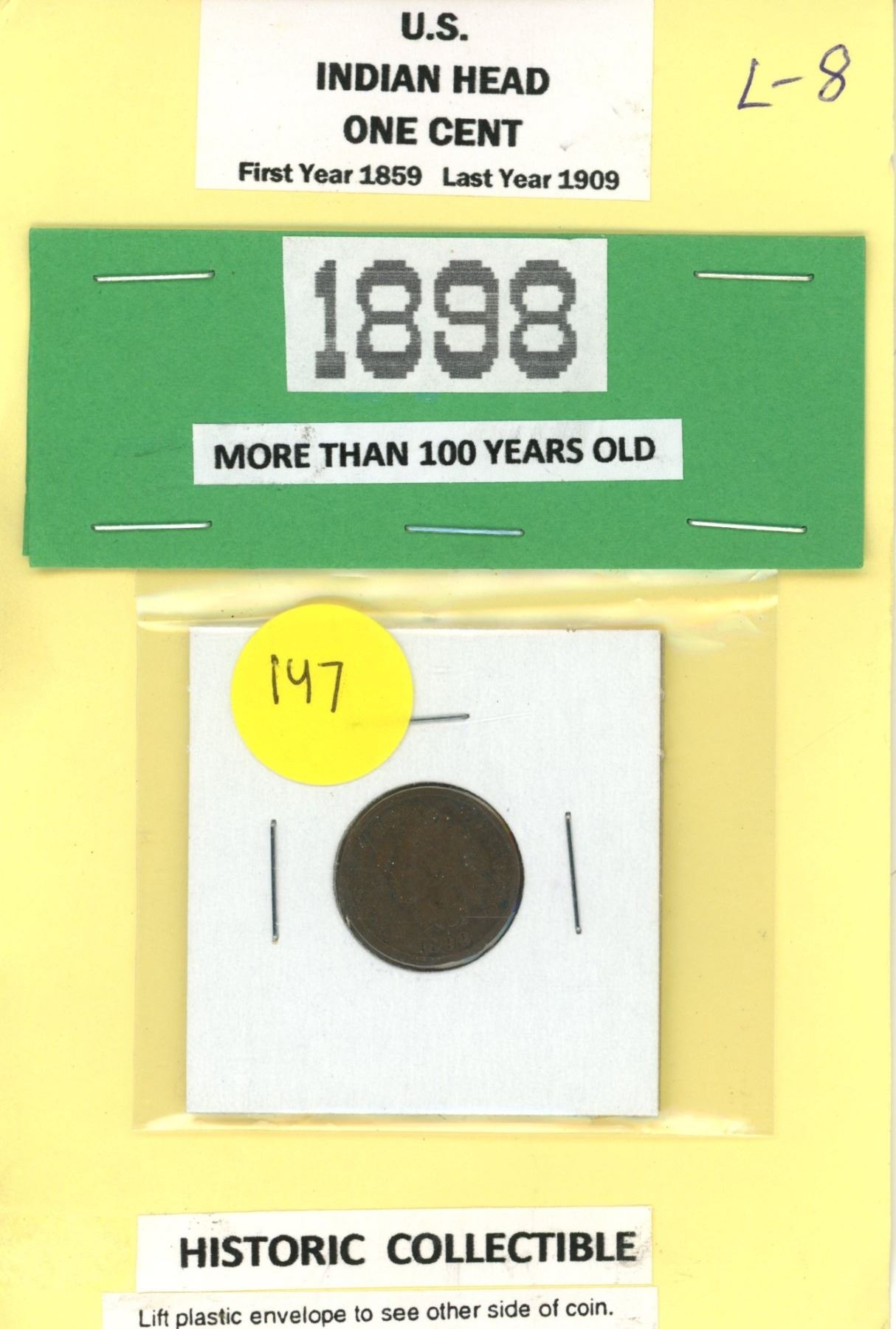 U.S. Indian Head One Cent From 1859-1909 (1898 Historic Collectible)