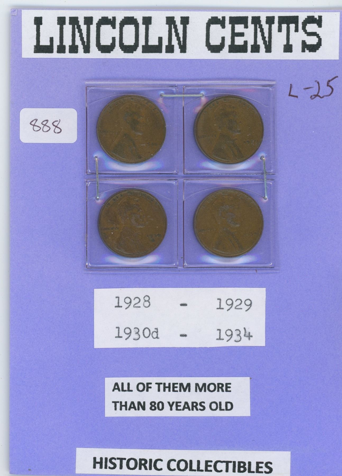 U.S. Lincoln one cent 1928, 1929, 1930d and 1934 - all more than 80 years old