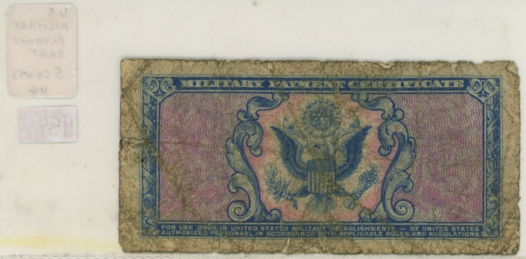 U.S. Military Payment Certificate. Series 281. 5 Cents. VG-8.