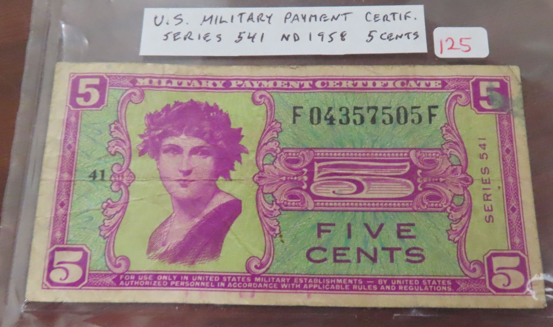 U.S. Military Payment Certificate. Series 541 (1958) 5 Cents. Fine.