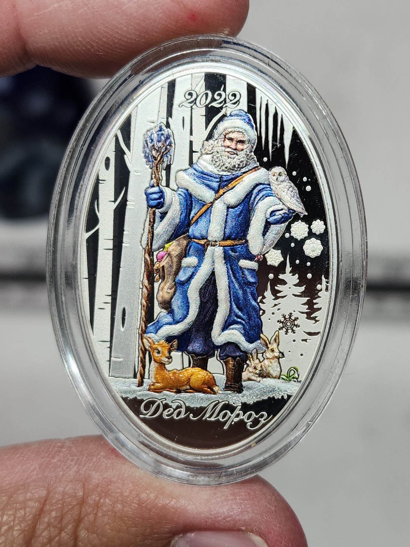UNIQUE - 2022 - $5.00 - 1 oz Silver Father Frost in wooden nests (Solomon Islands)