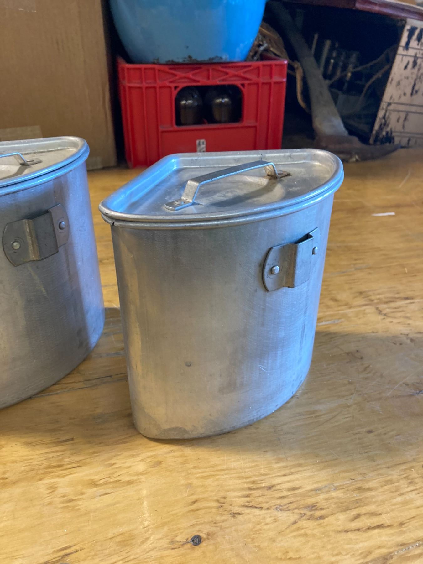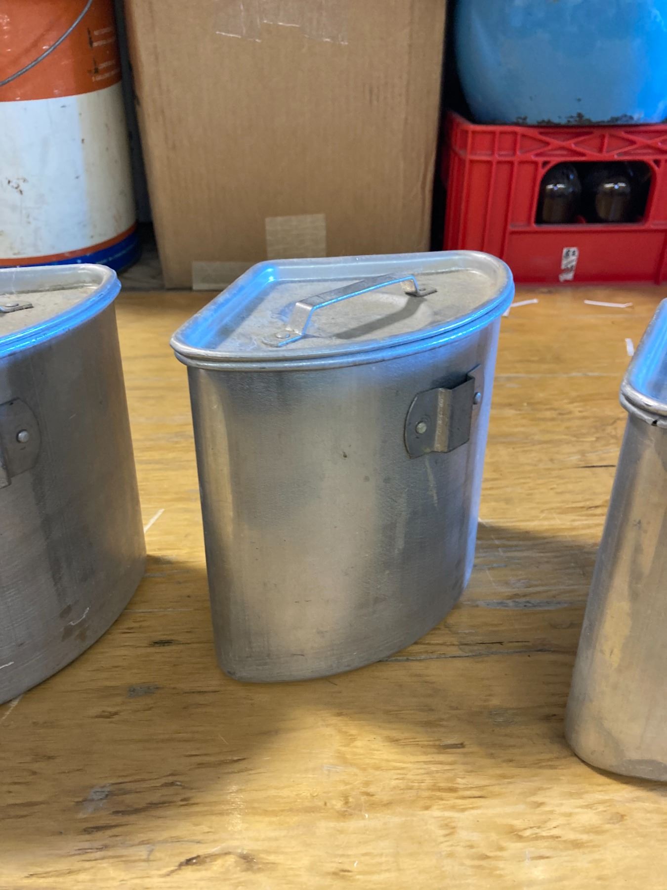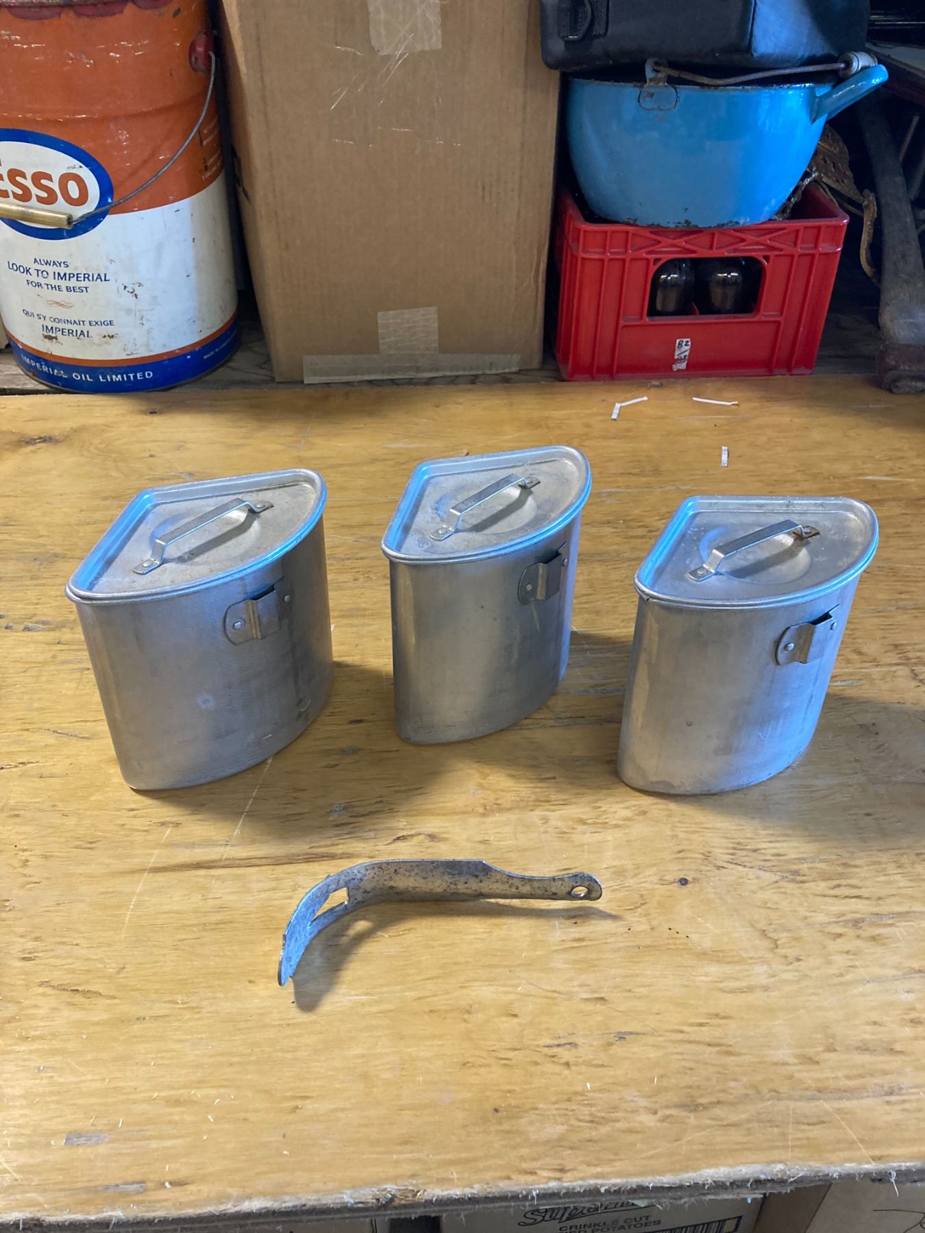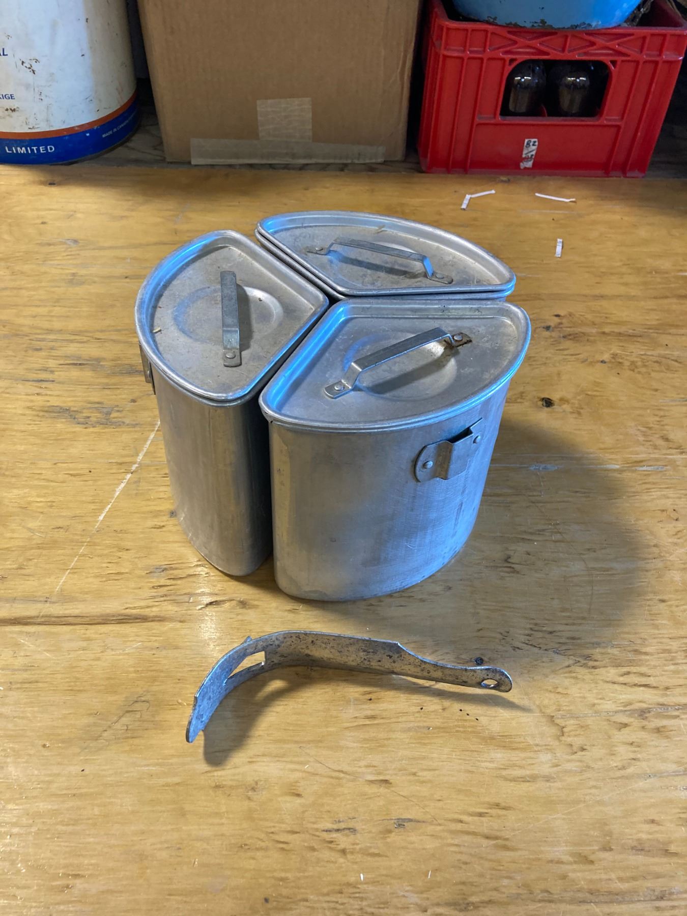 UNIQUE VINTAGE 3 PIECE ALUINUM COOK SET W/ LIDS AND LIFTER