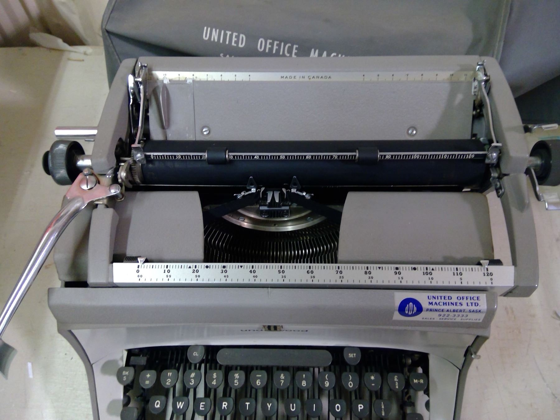 UNITED MACHINES GRAY TYPEWITER WITH COVER
