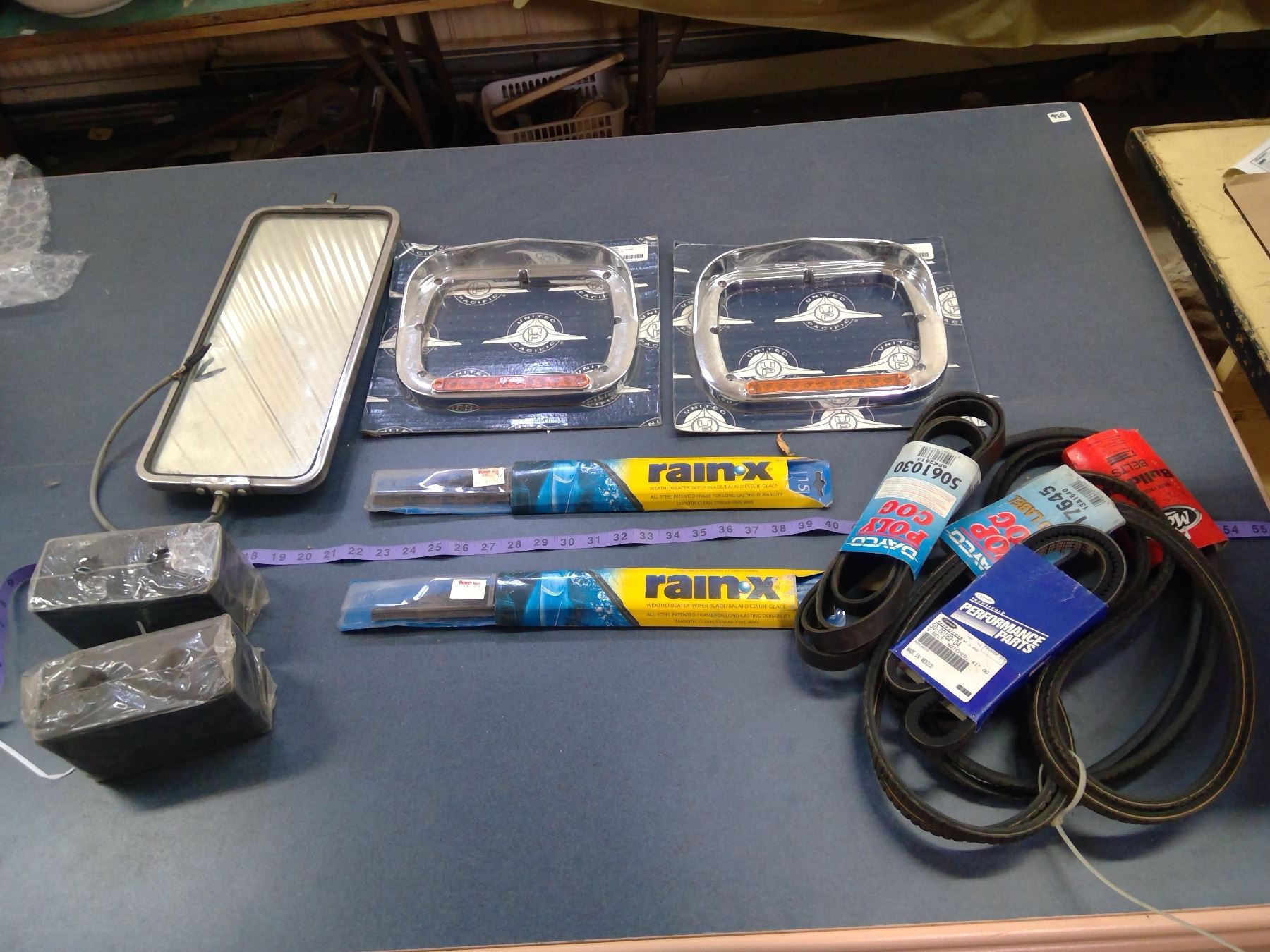 UNITED PACIFIC CAR LIGHT FRAMES, WINDSHIELD WIPERS, BELTS, MIRROR