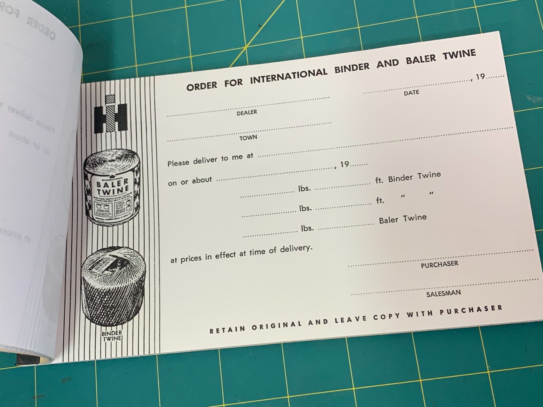 UNUSED INTERNATIONAL HARVESTER TWINE ORDER FORM BOOK