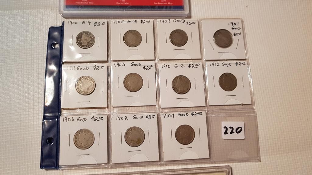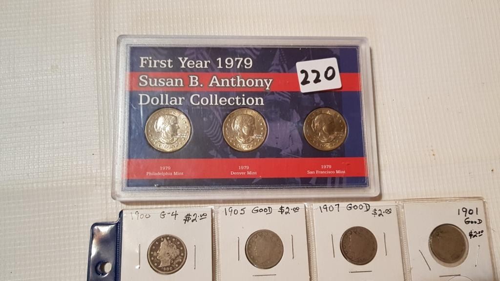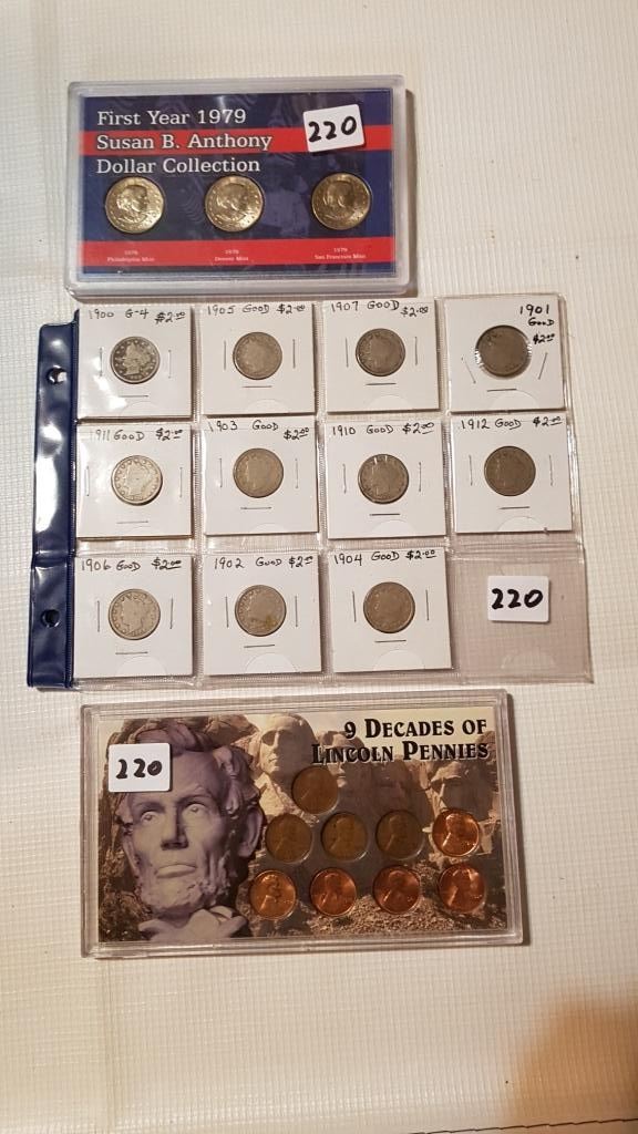 US COIN LOT, 3 ANTHONY $1, 11 NICKLES, V-TYPE, PENNIES