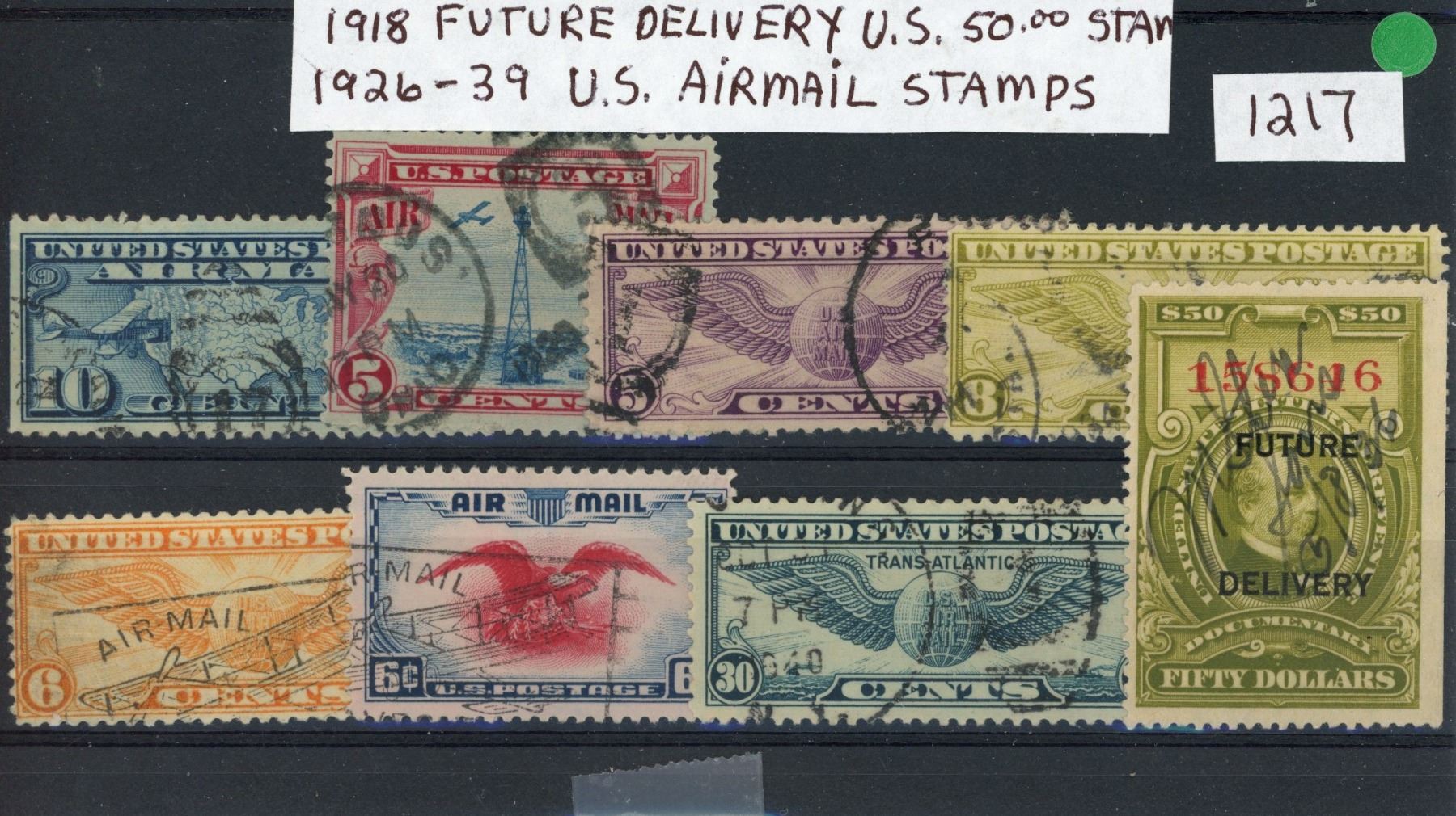 USA 1918 Future Delivery 50.00 Stamp & 1926-39 Air Mail Stamps V.F.