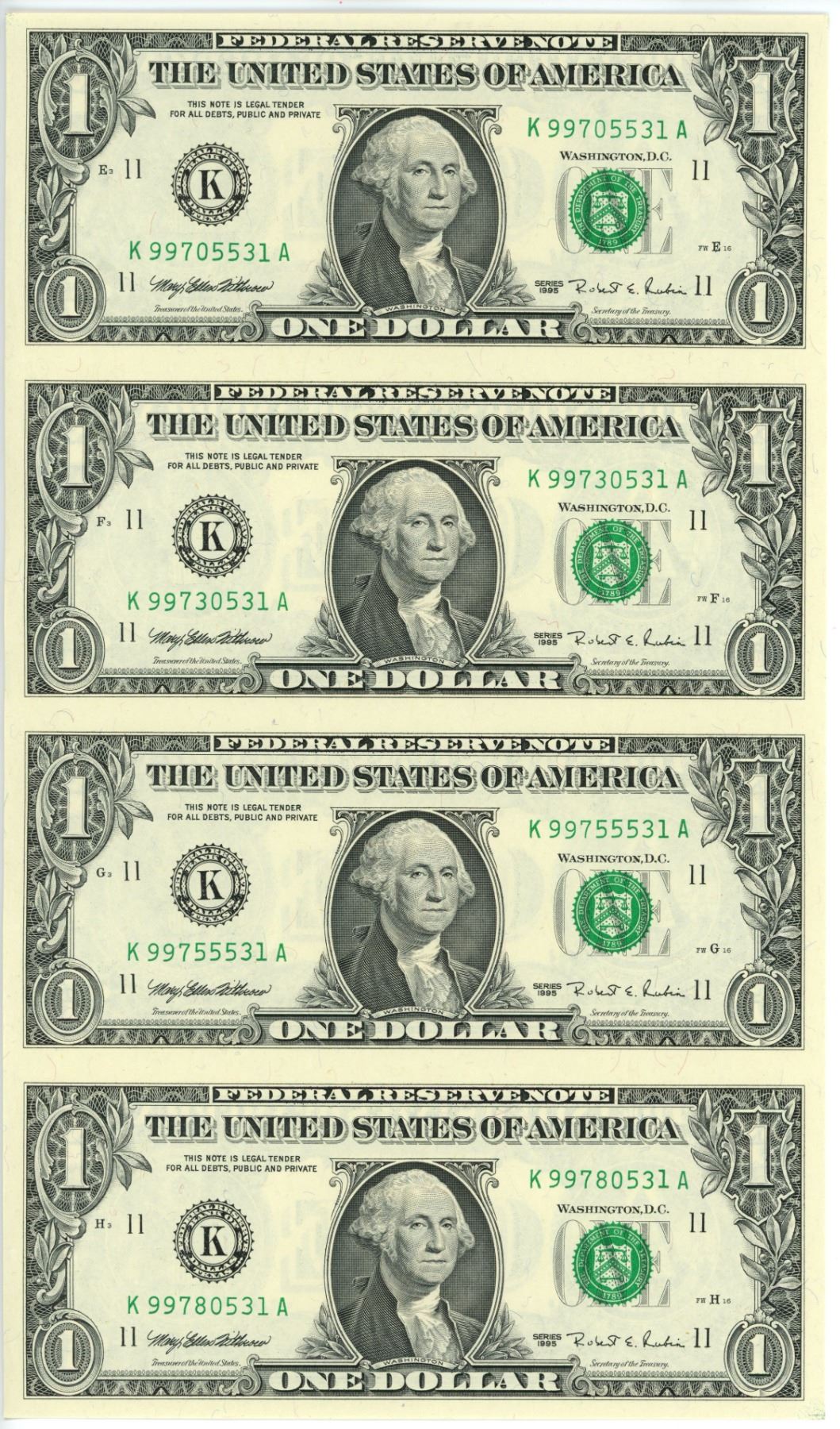 USA 1995 $1.00 uncut sheet of 4 mint condition