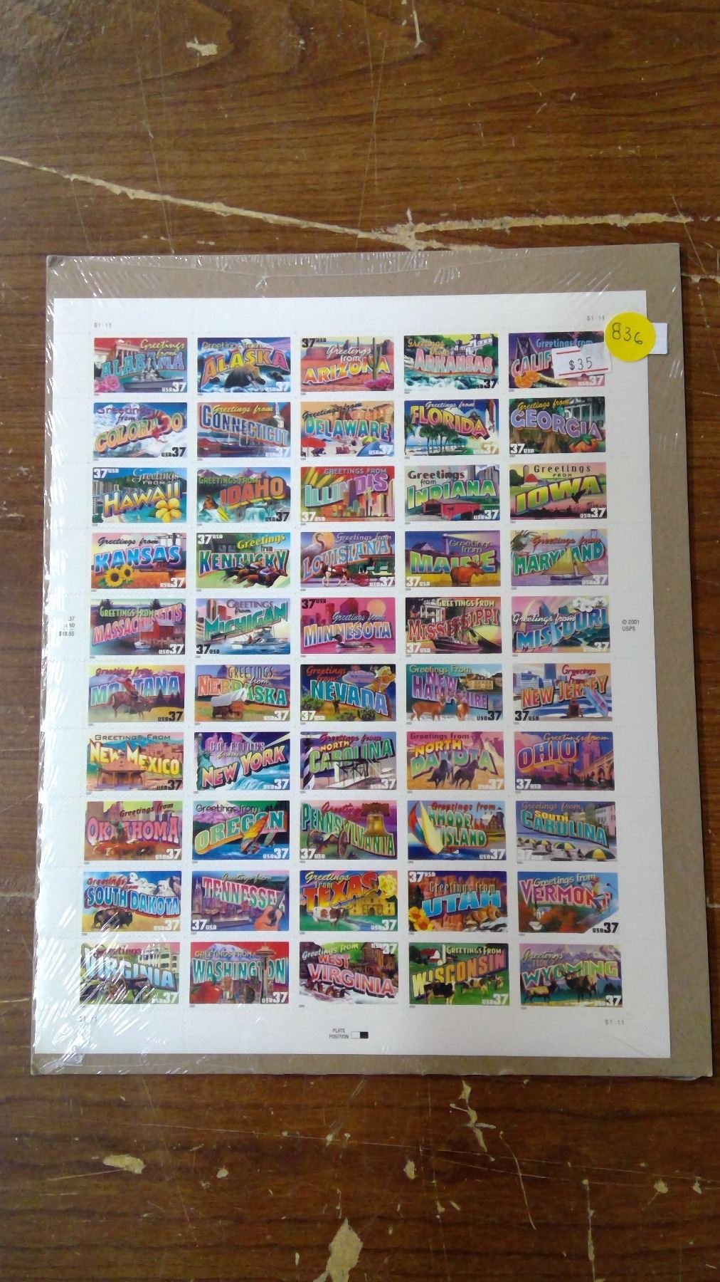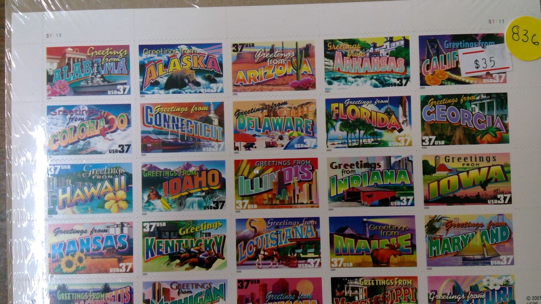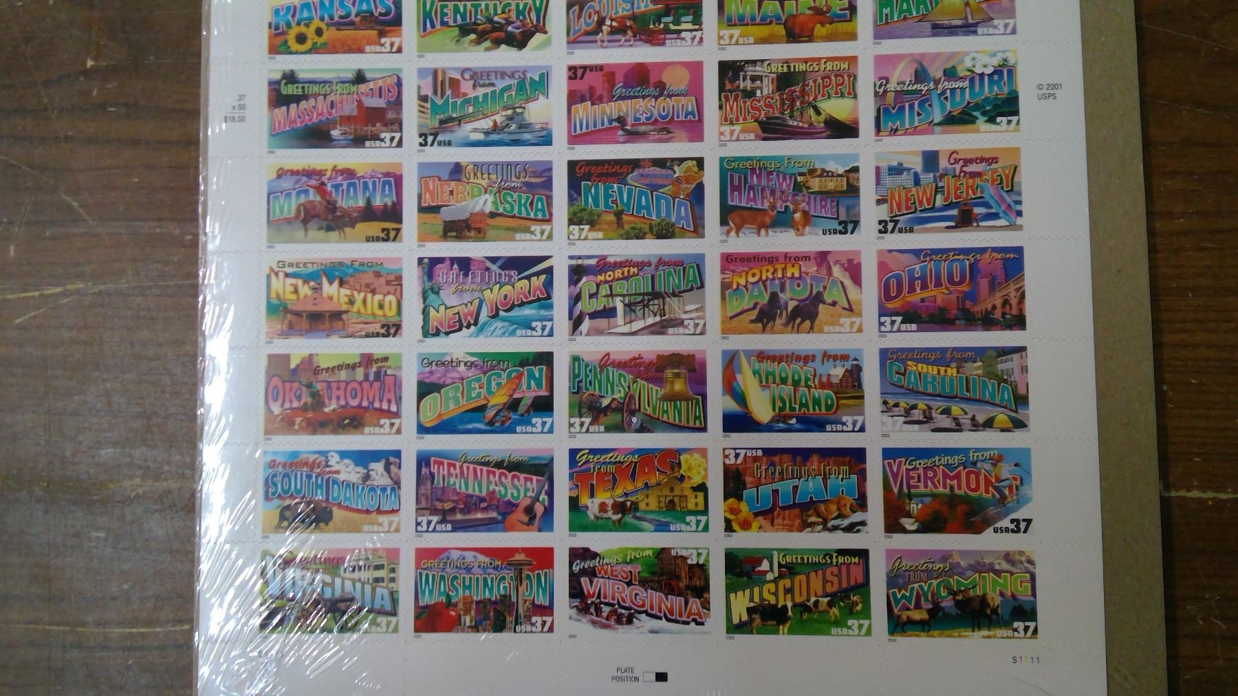 USA 50 STAMPS FROM STATES FULL SHEET WITH GREETING FROM SERIES