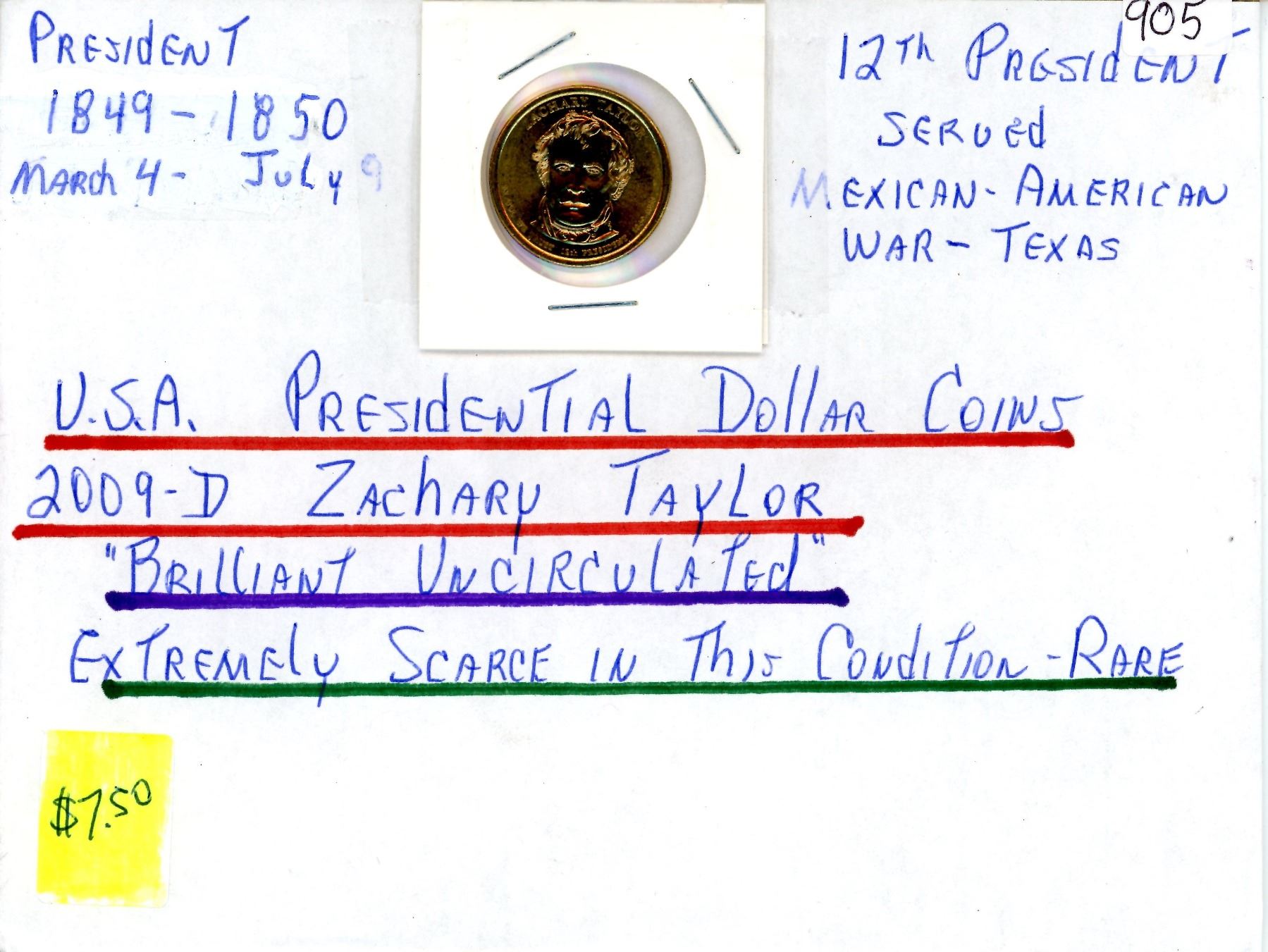 USA Presidential Dollar Coin 2009-D, 12th President Zachary Taylor
