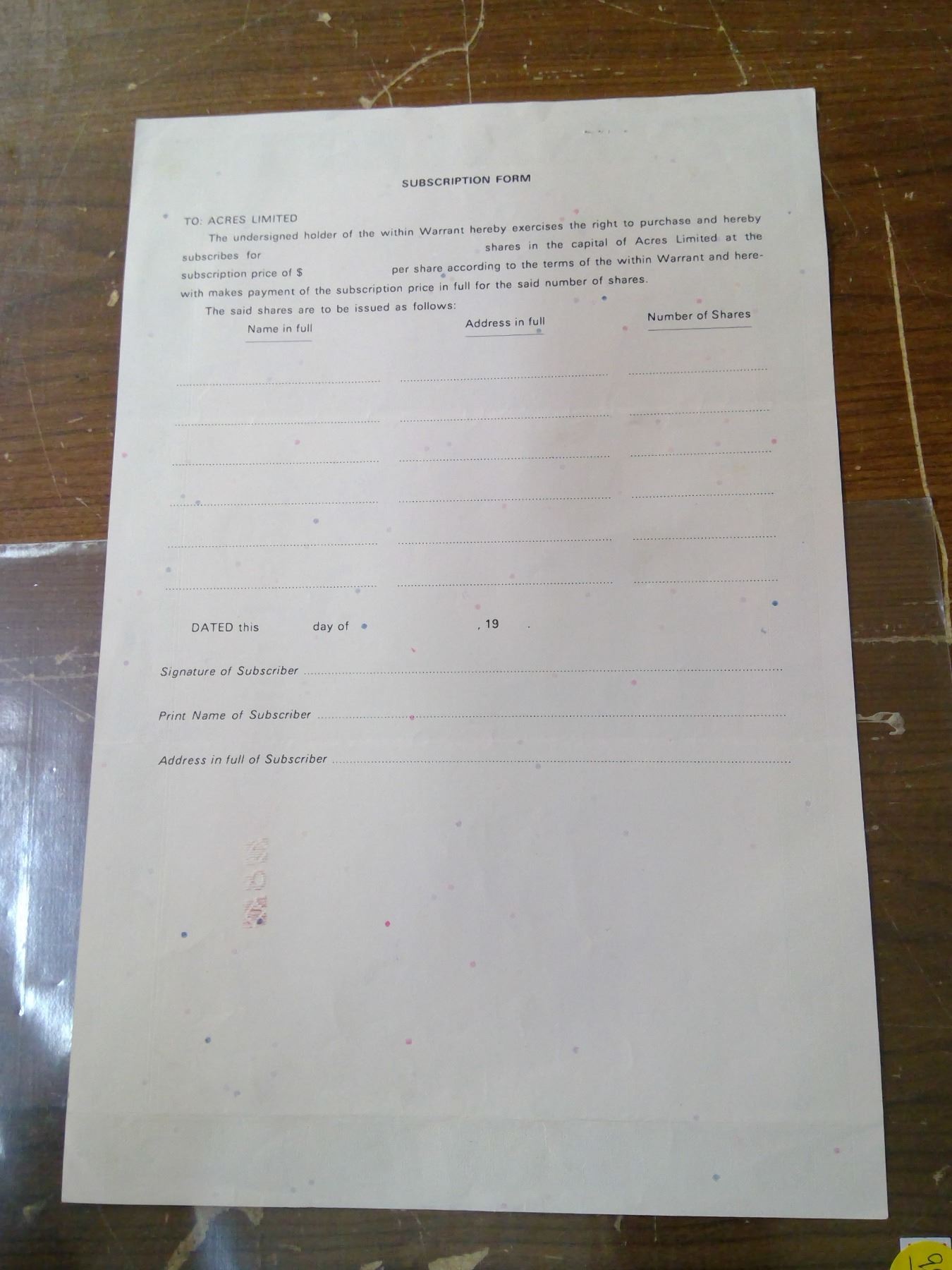 USED STOCK SHARES COMPANY CALLED ACRES LIMITED ONTARIO