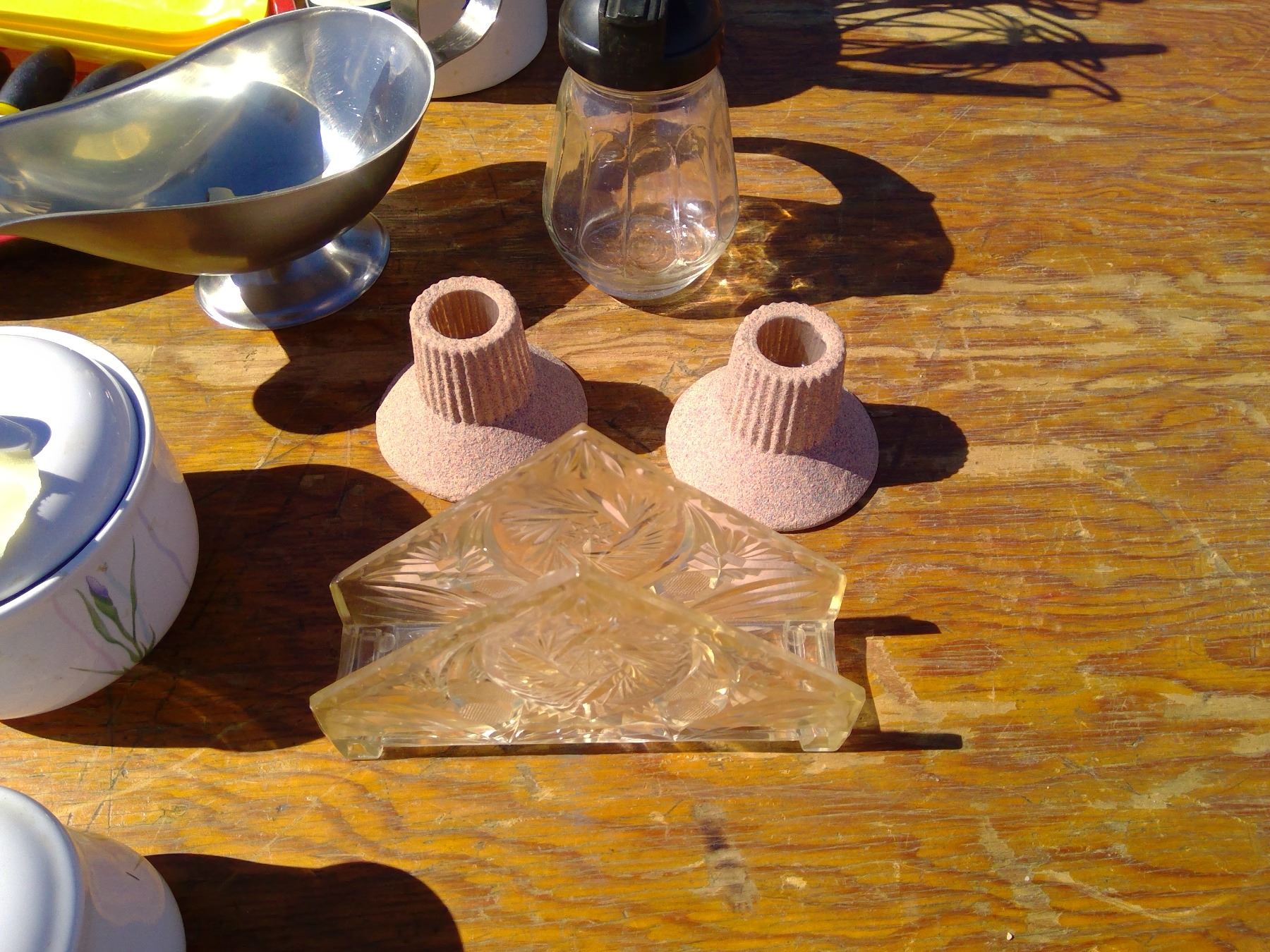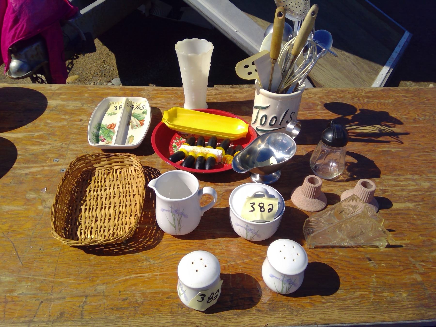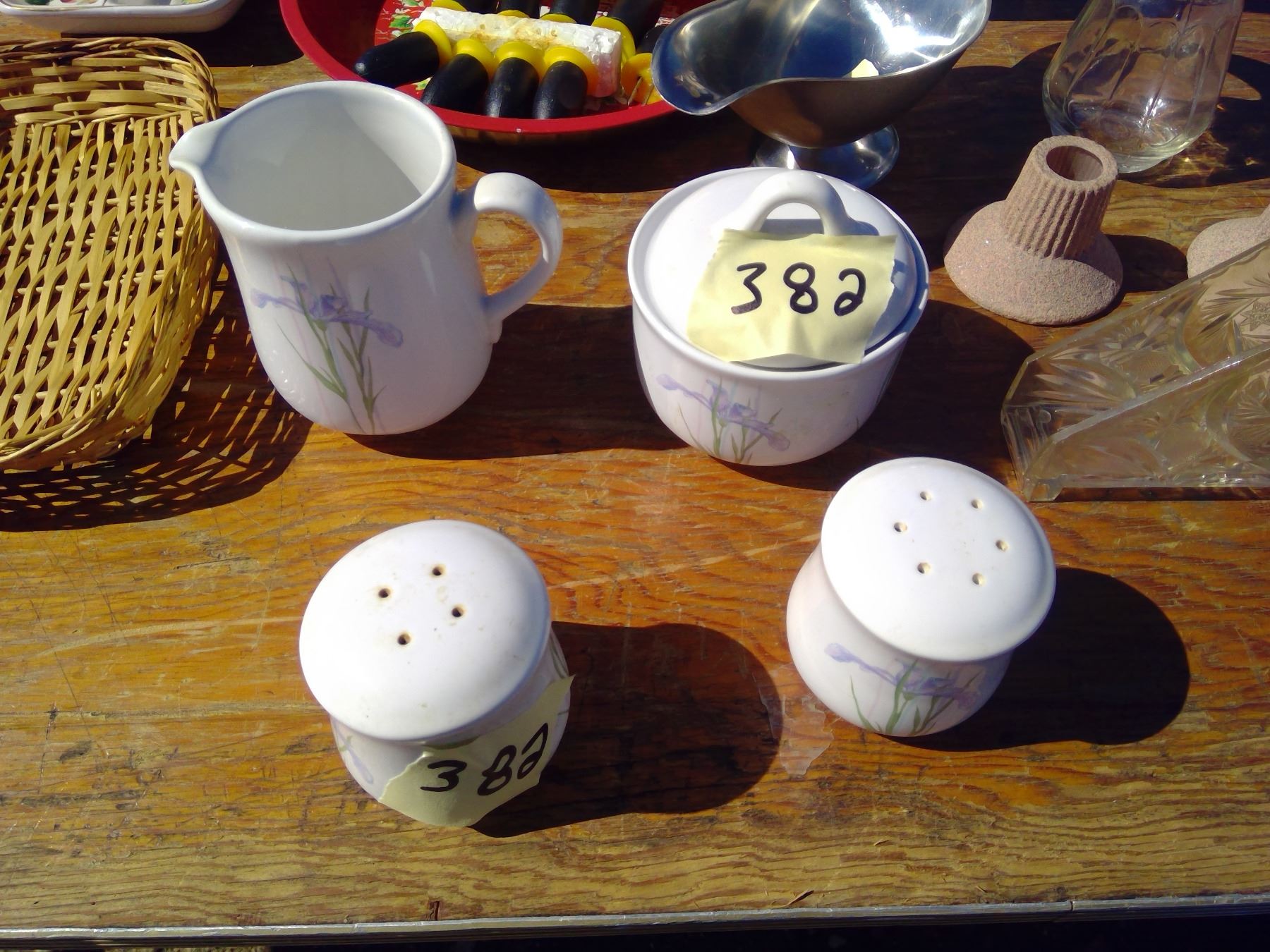 UTENSILS+CENTRE TABLE/NAPKIN HOLDER+ VASE+ CREAM AND SUGAR AND SALT AND PEPPER SET