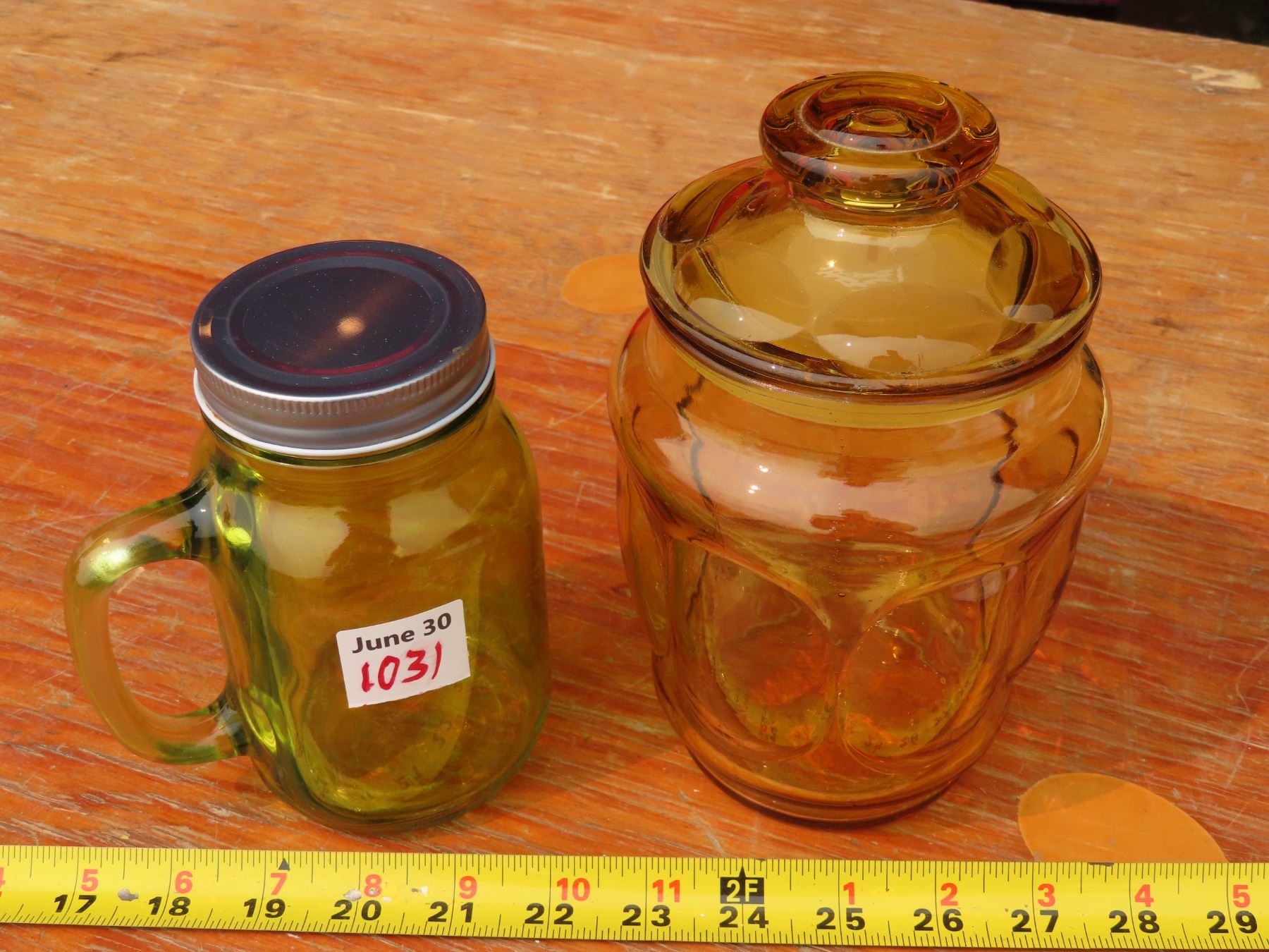 Unique Yellow glass Mason Jar mug and Yellow Glass cookie jar