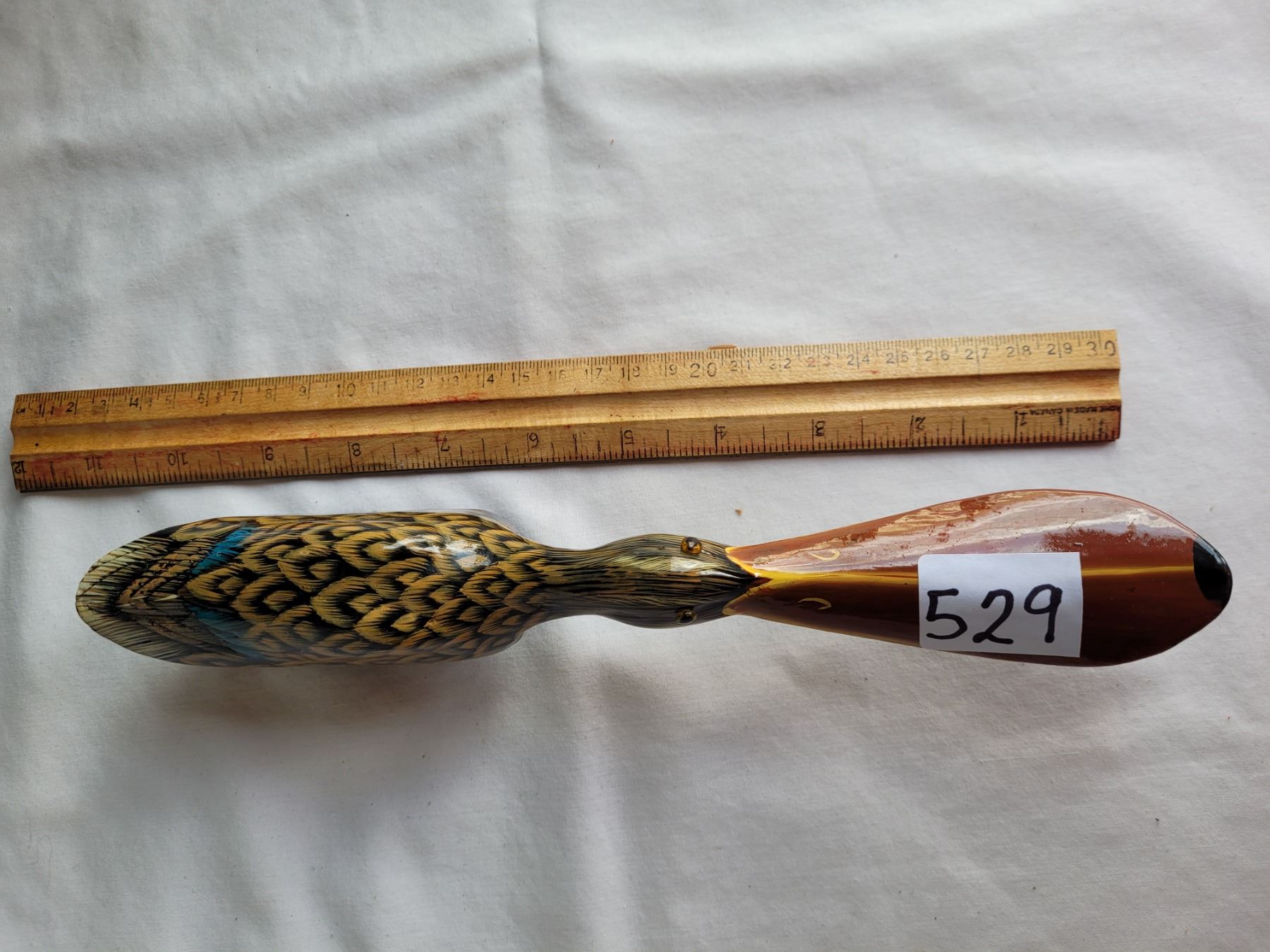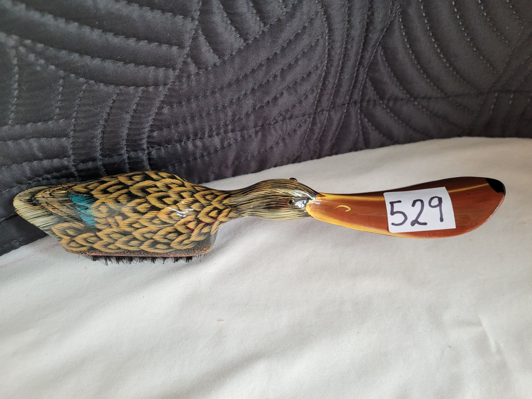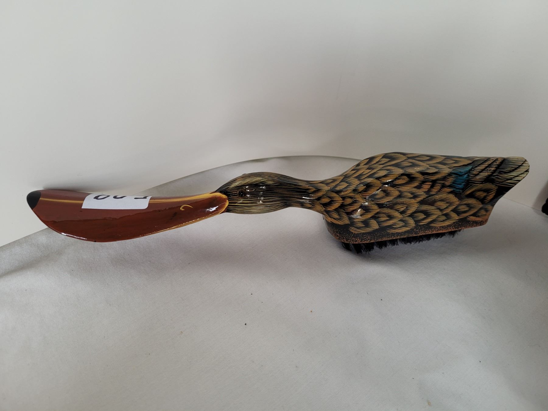 Unique carved and painted shoehorn/brush Duck.