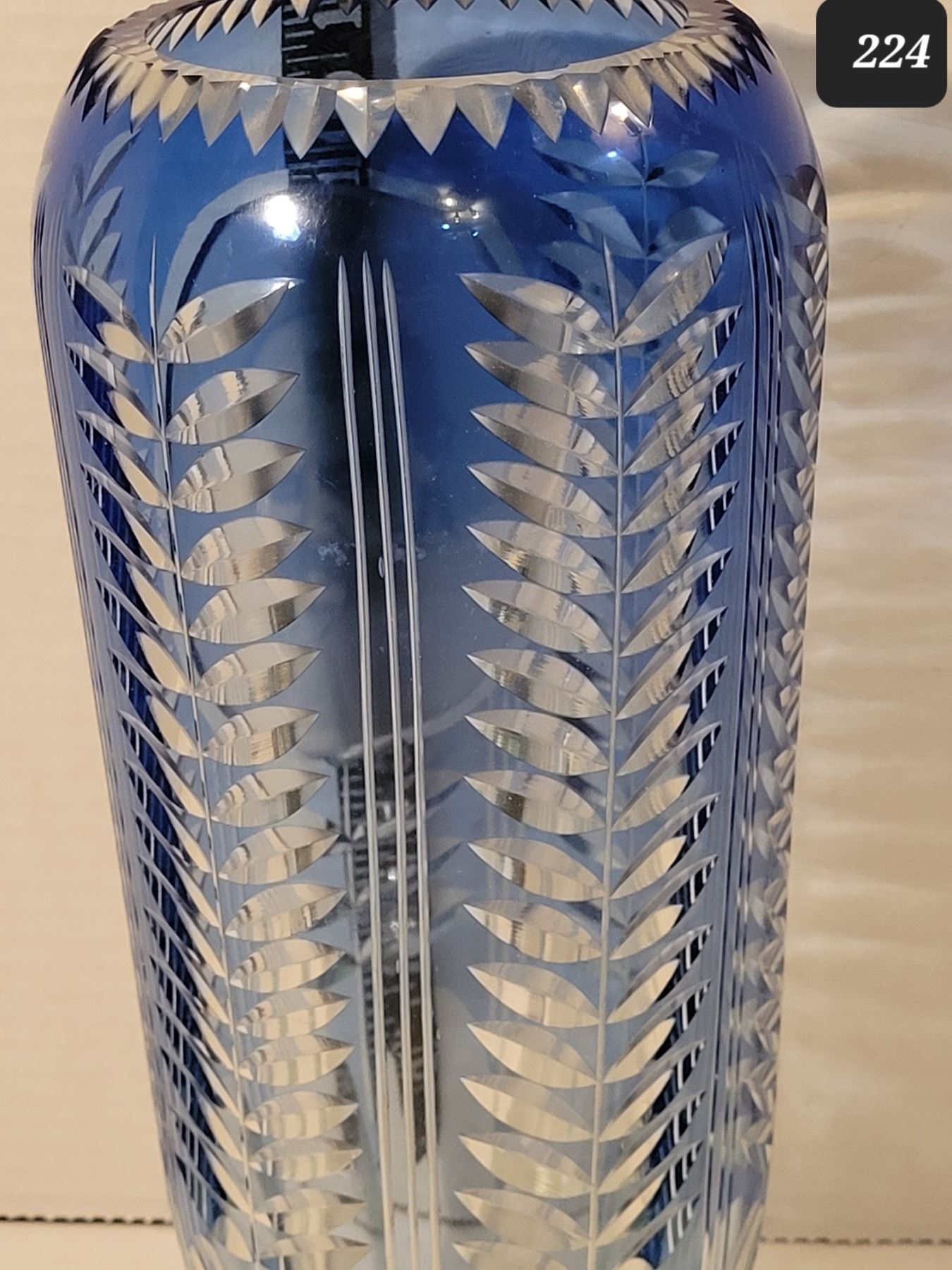 Unique & rare “Lenin” blue cut glass vase.