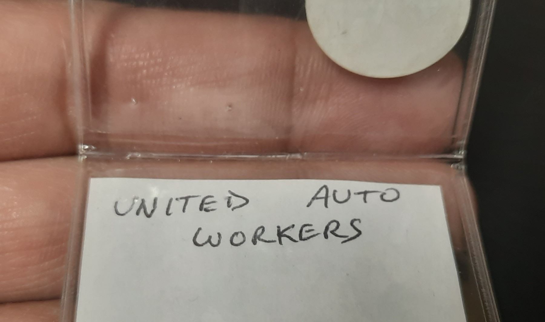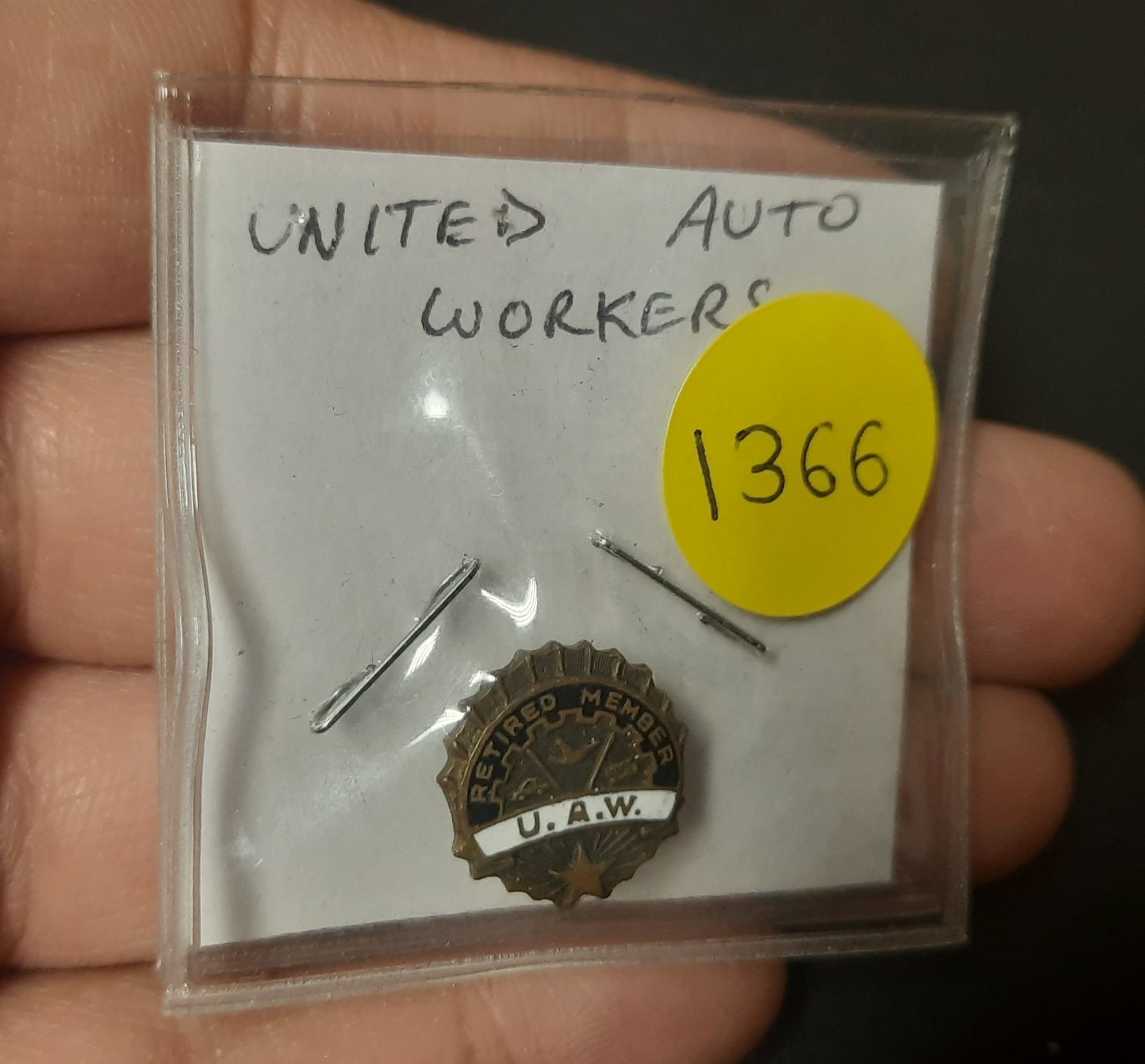 United Auto Works Retired Member enamel pin.