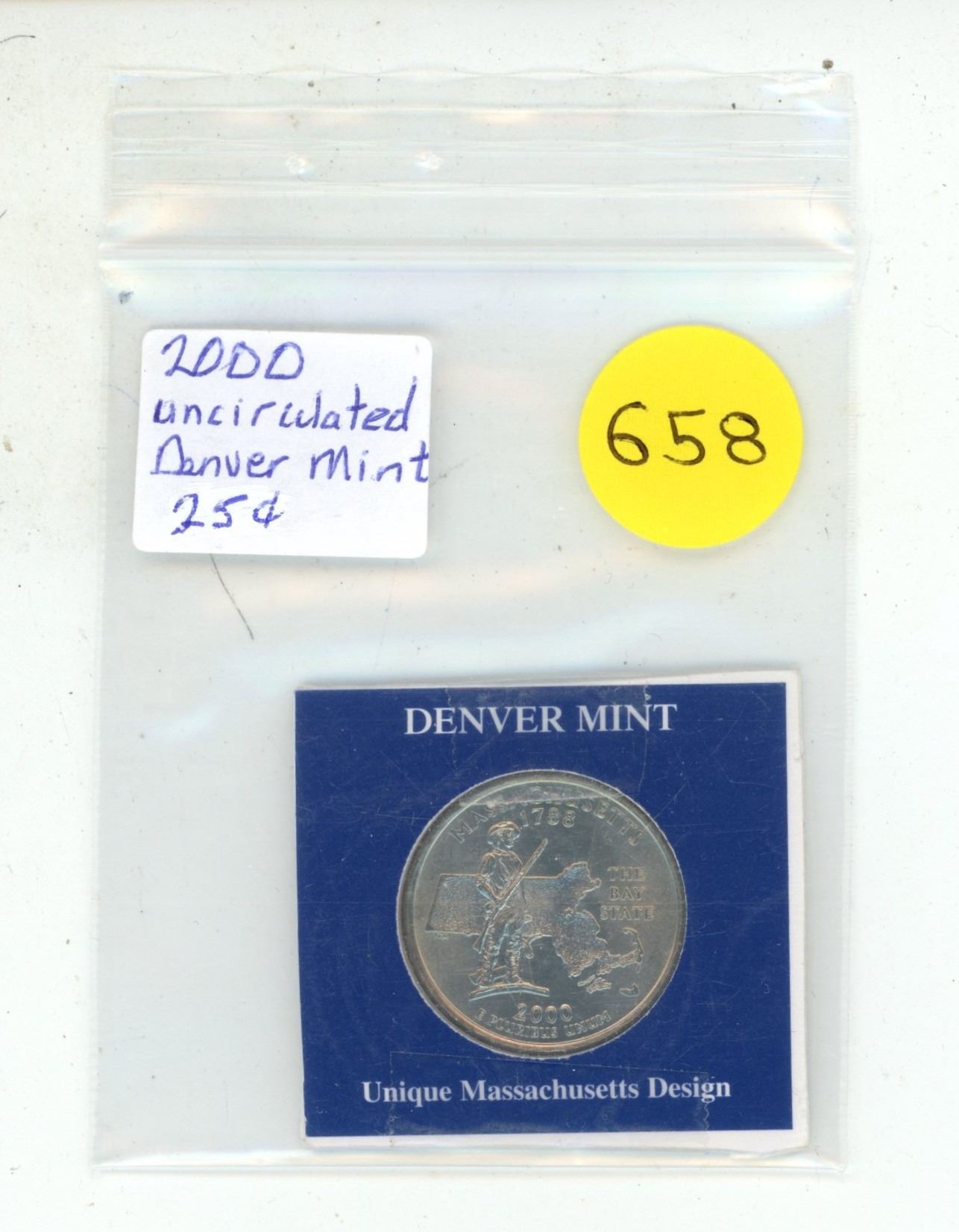 United States quarter from the year 2000, honoring Massachusetts - Denver Mint.