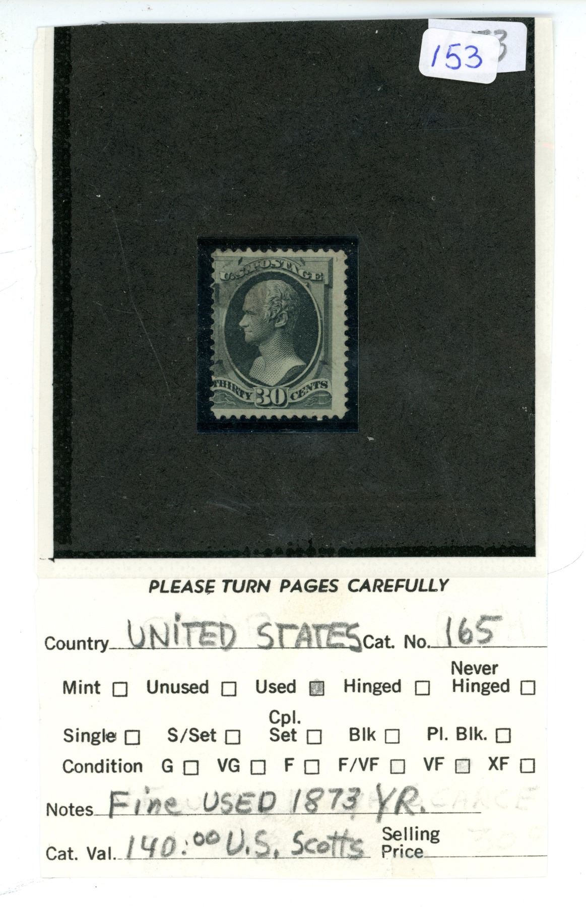 United states 165 alexander hamilton fine used 1873 year