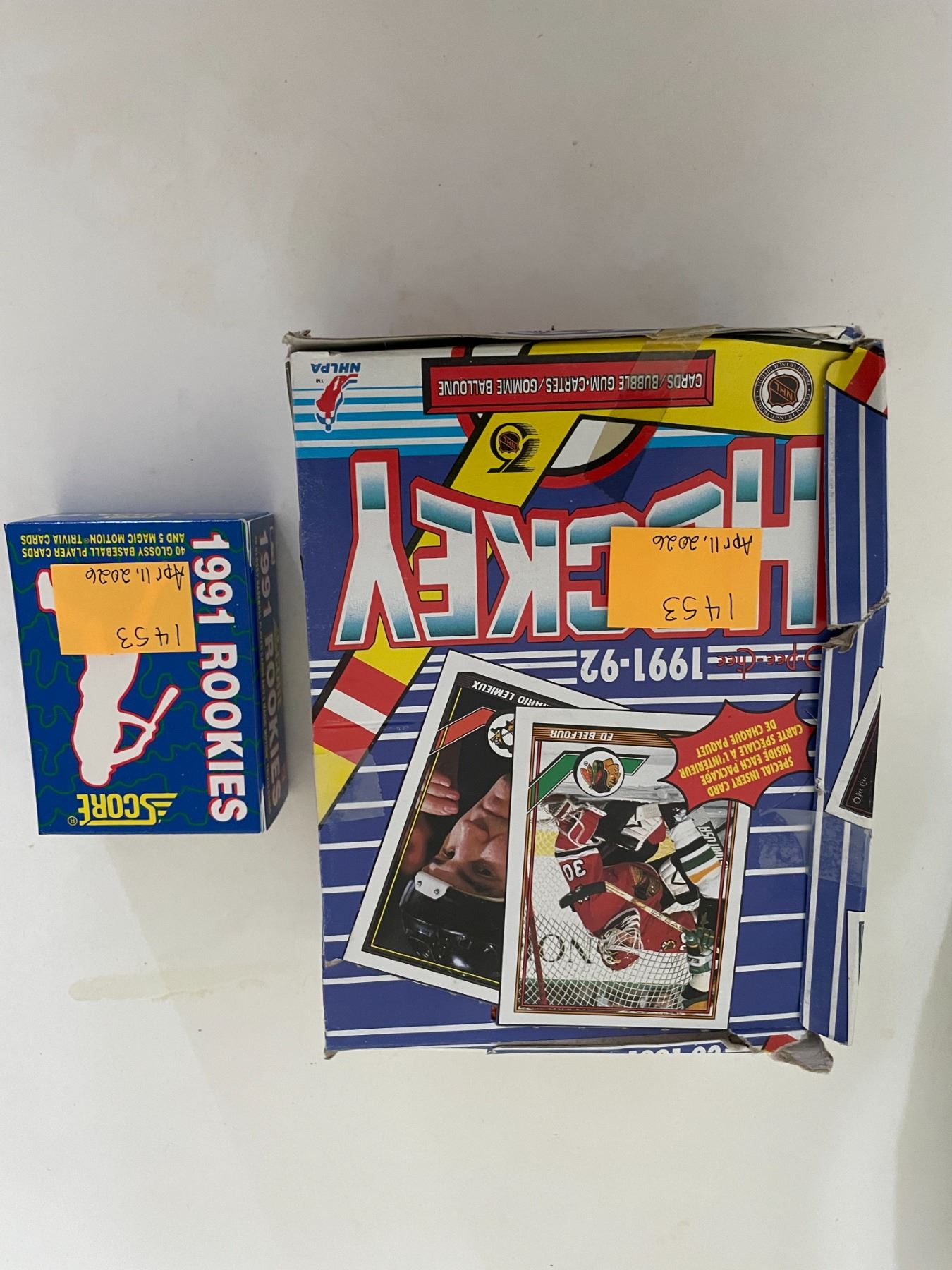 Unopened 1991 O-PEE-CHEE hockey cards with gum and 1991 box of score rookies baseball cards sealed