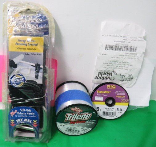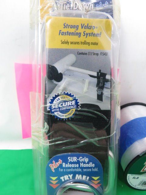 VELCRO TROLLING MOTOR TIE DOWN AND 2 ROOLS OF FISHING LINE