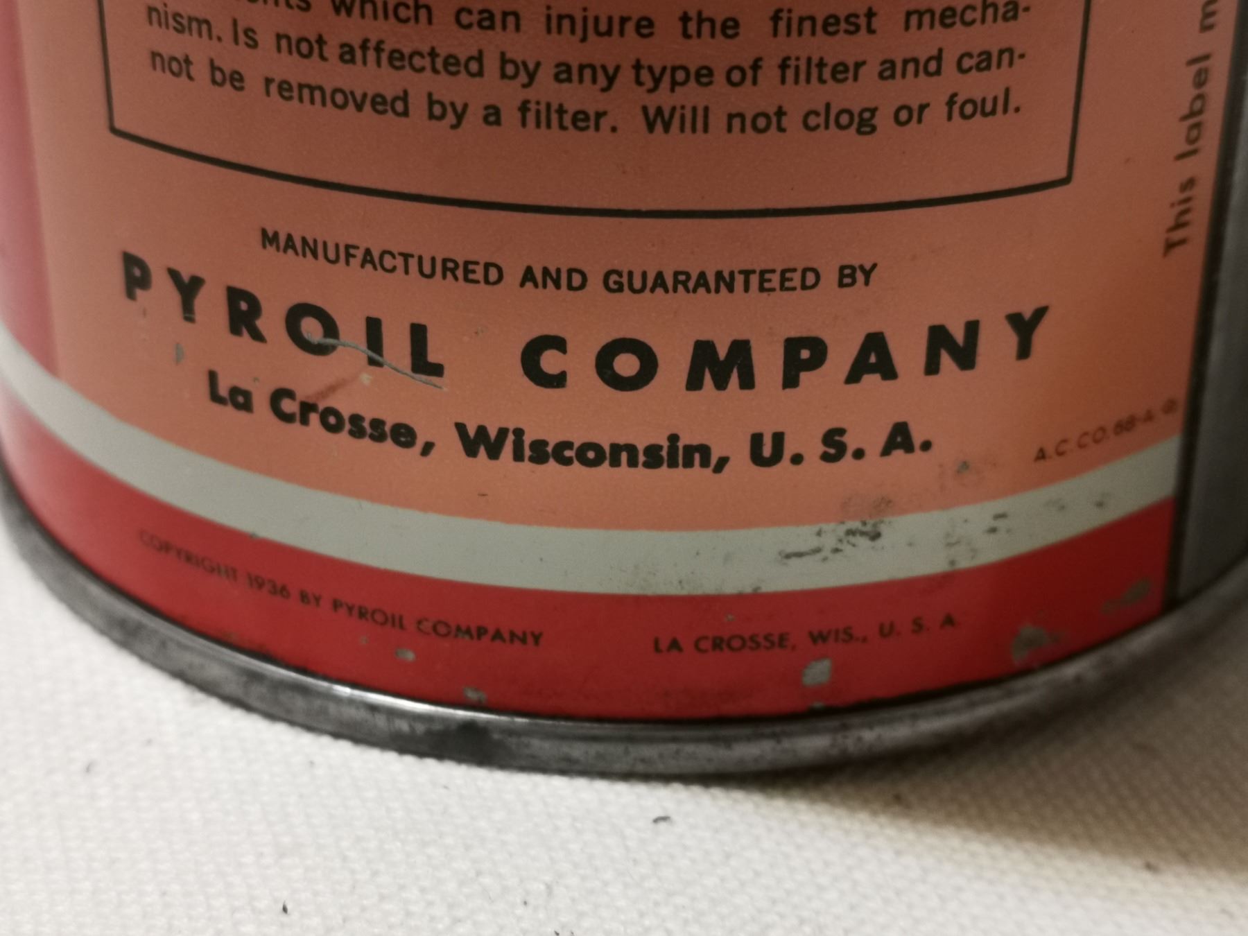 VERY RARE PYROIL OIL, AVAIATION, 1930'S