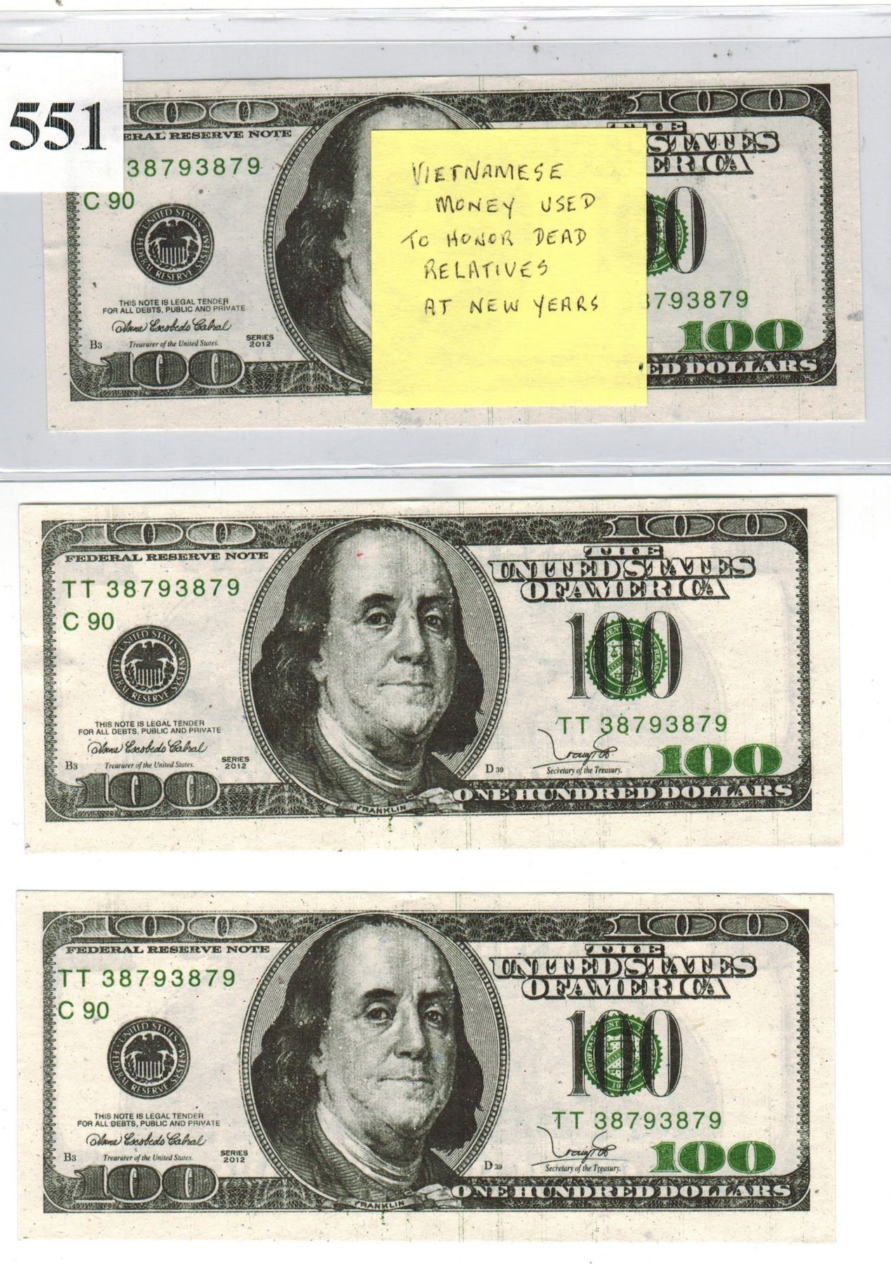 VIETNAMESE SPIRIT MONEY - Used to honor dead Relatives at New Years - Lot of 3 notes