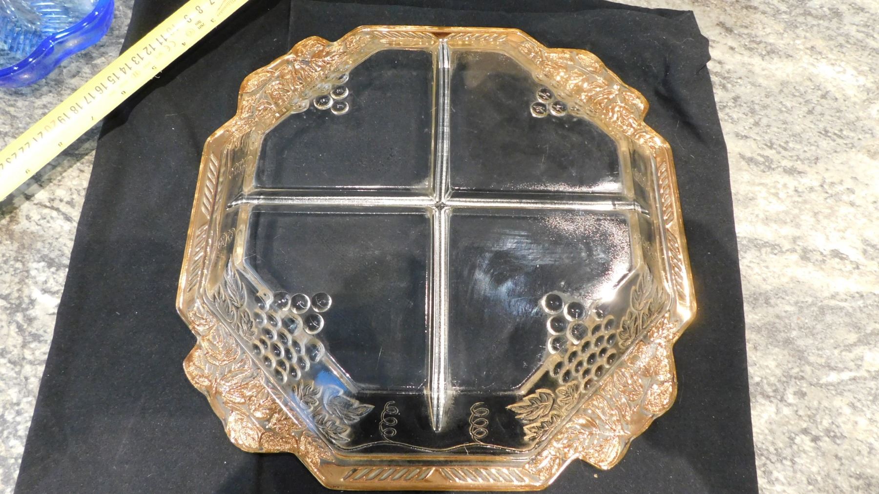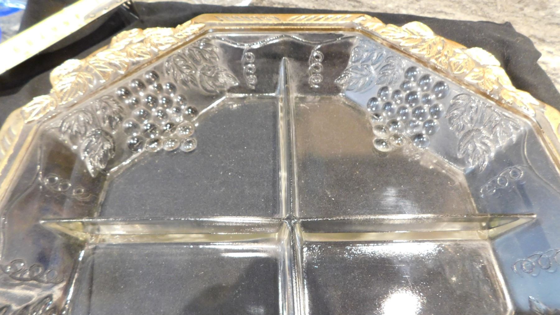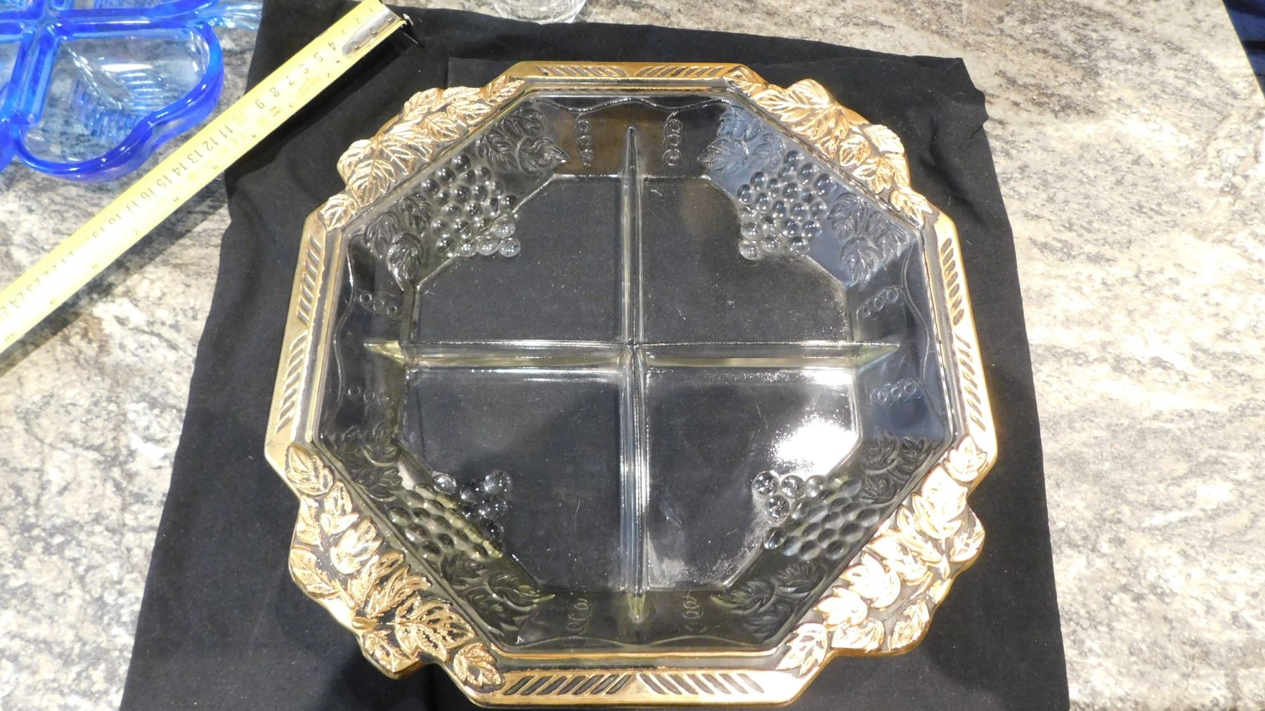 VINTAGE 12 X 12" OCTAGONAL, DIVIDED DISH, GRAPES WITH GOLD TRIM