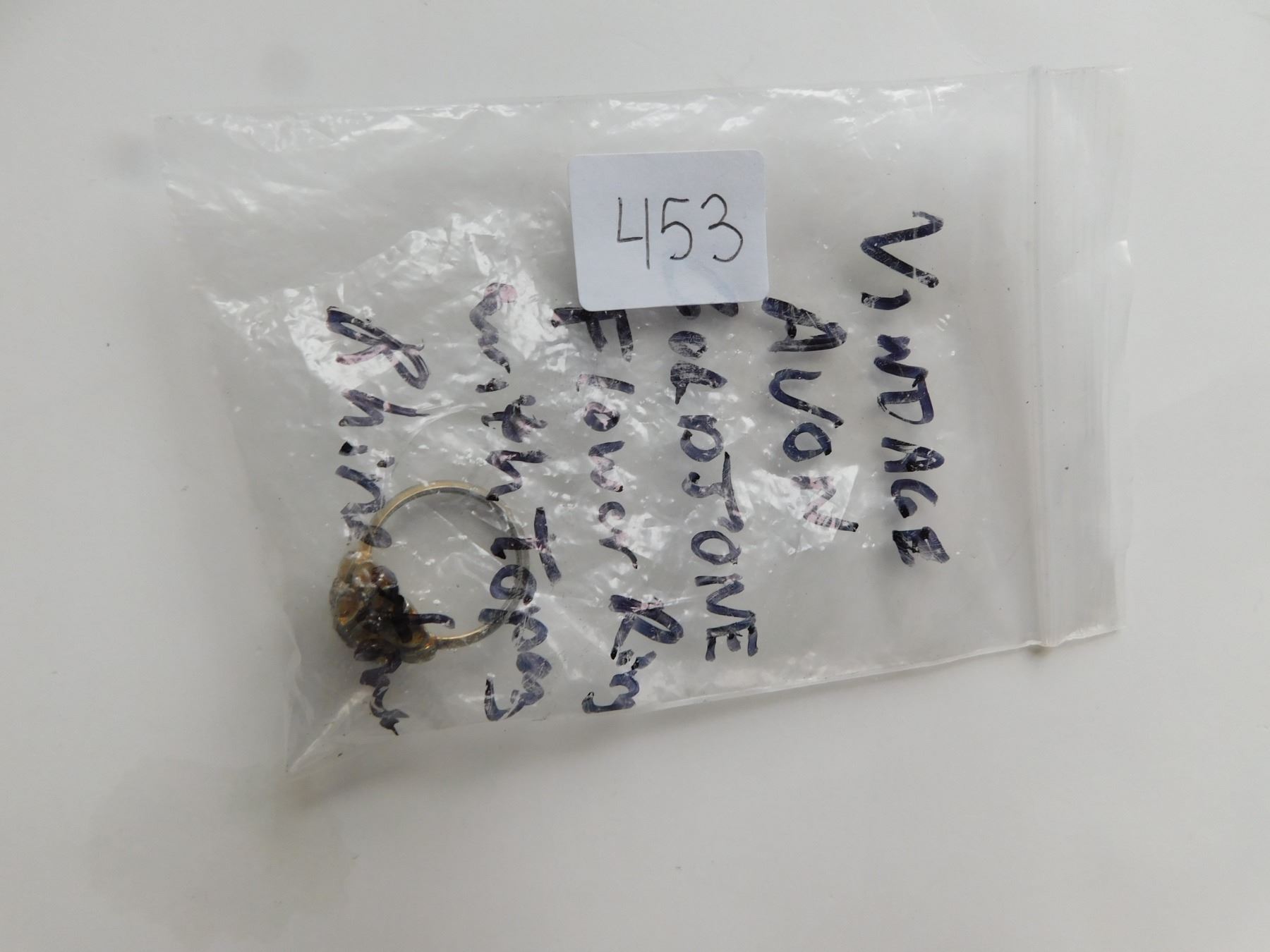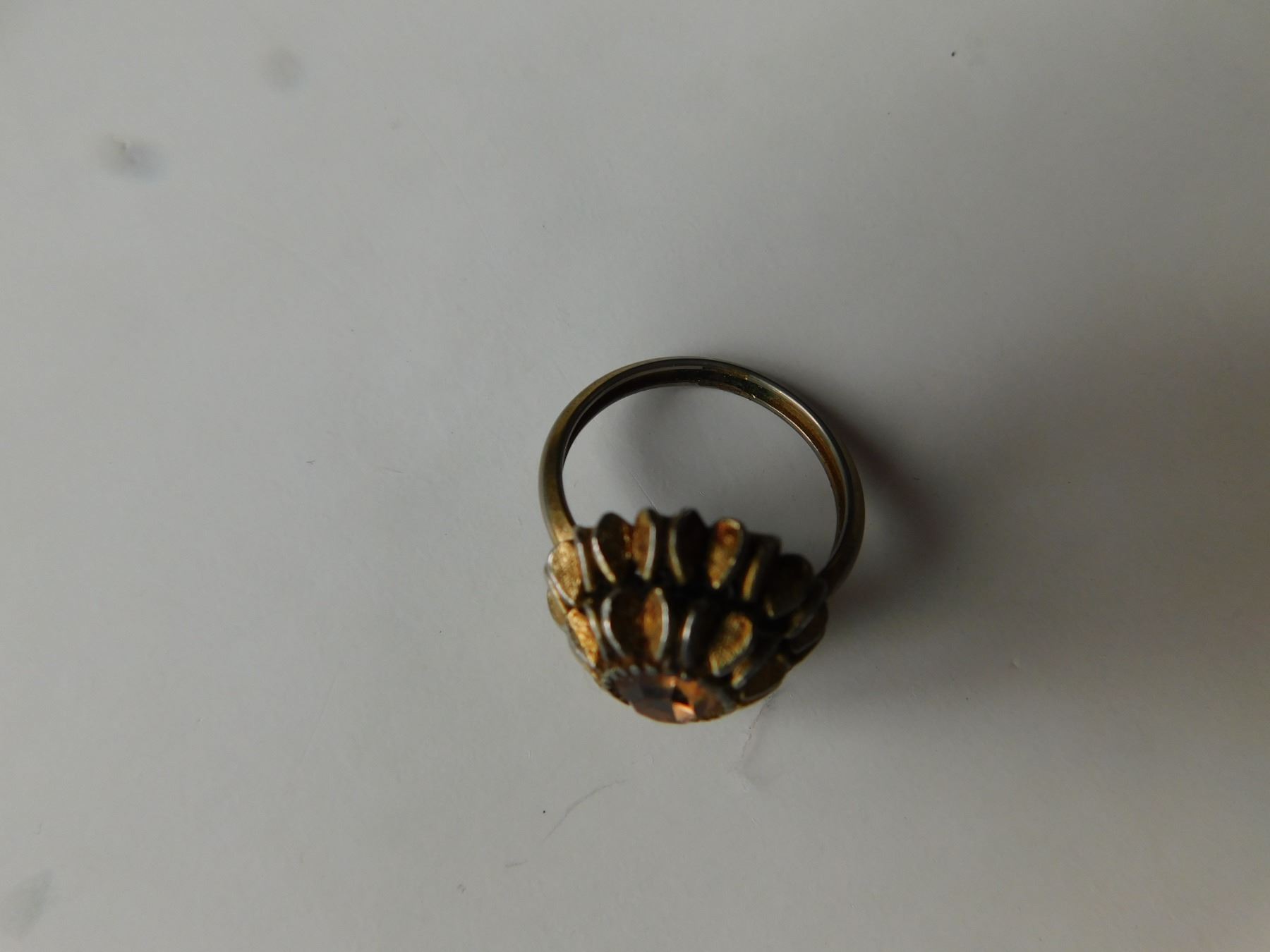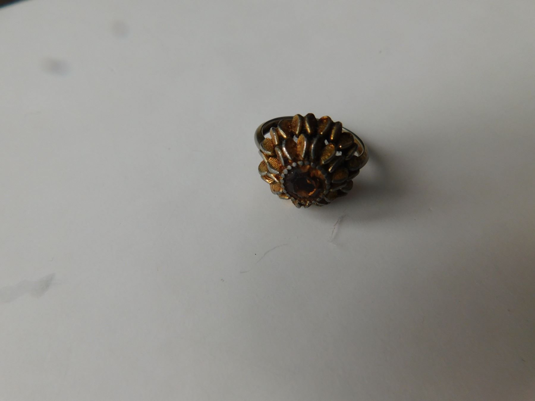 VINTAGE AVON GOLDTONE FLOWER RING WITH TOPAZ RHINESTONE
