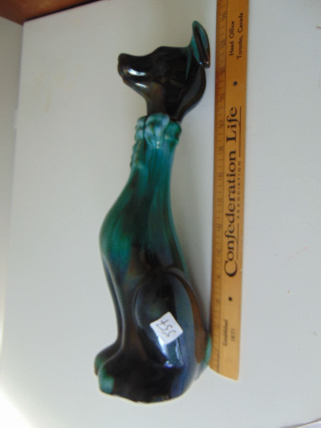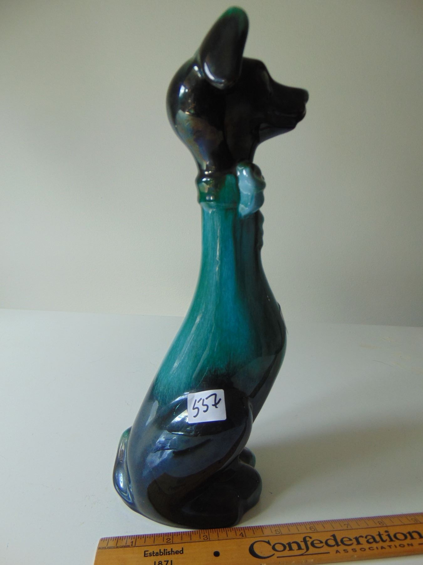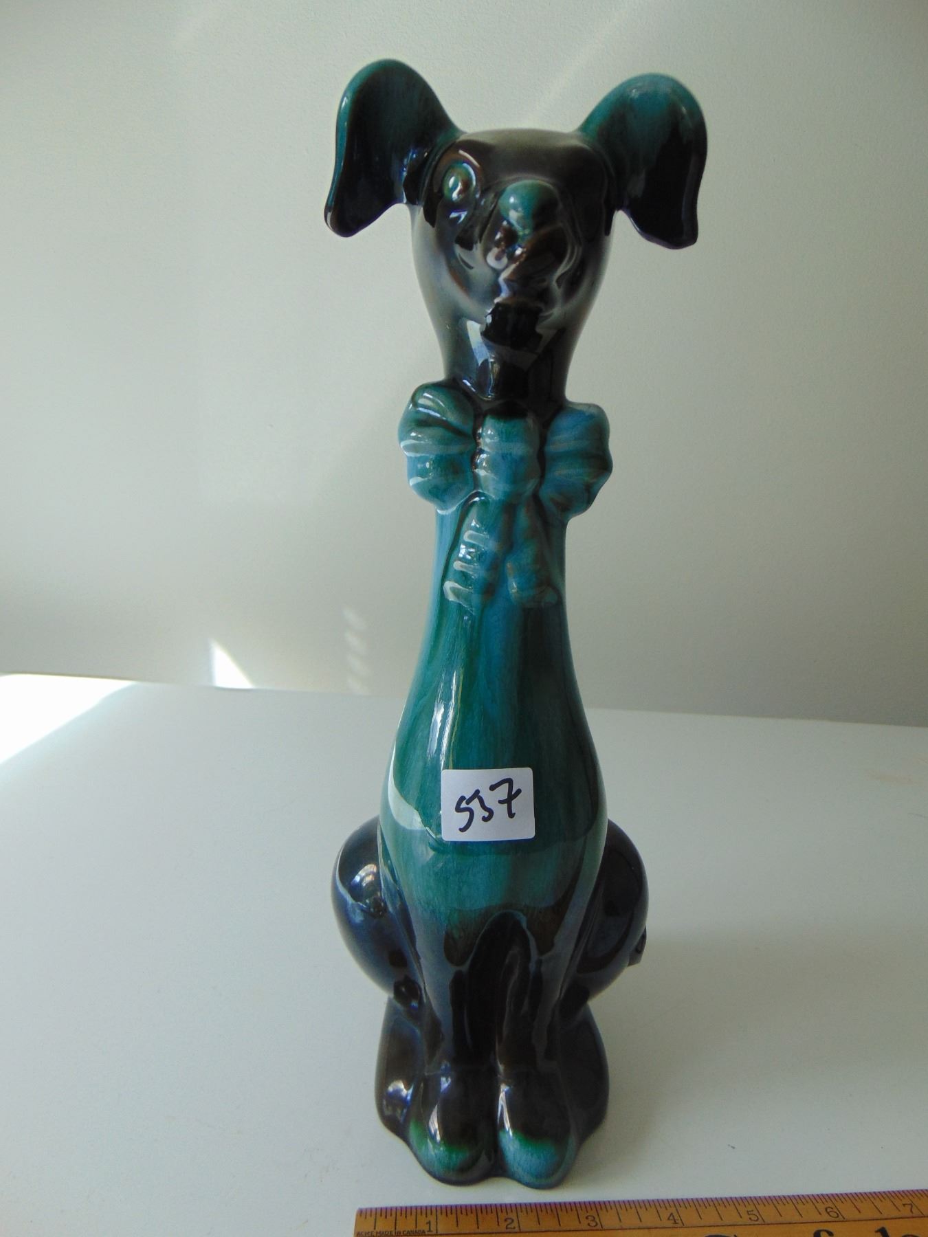 VINTAGE BLUE MOUNTAIN POTTERY DOG WITH BOW