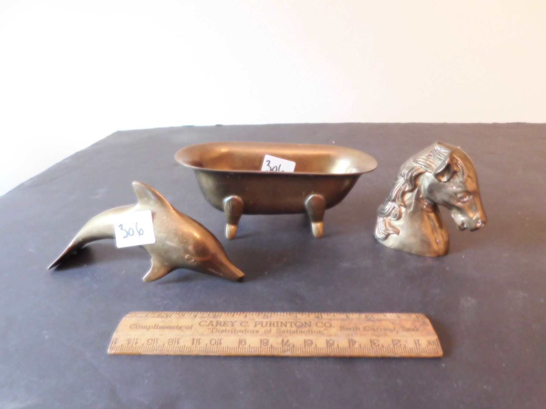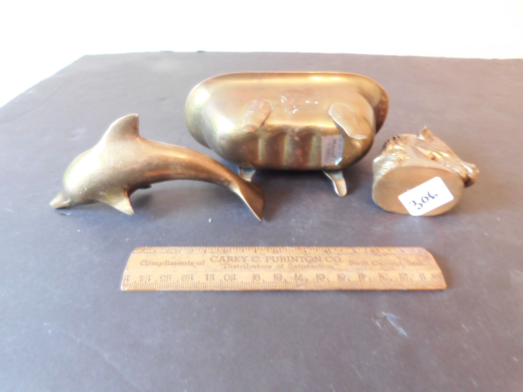 VINTAGE BRASS PAPERWEIGHTS AND ORNAMENTS