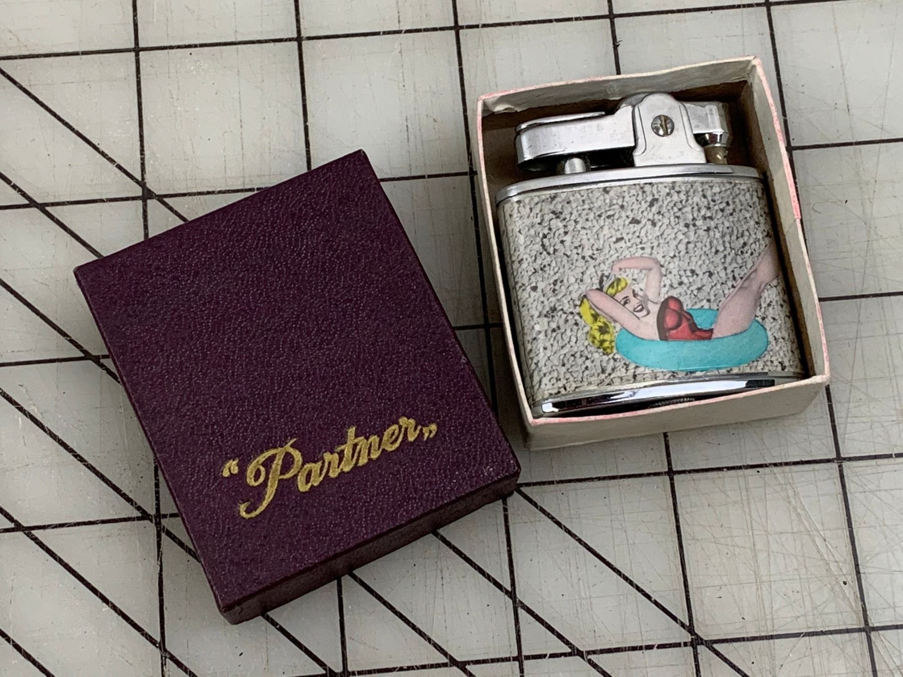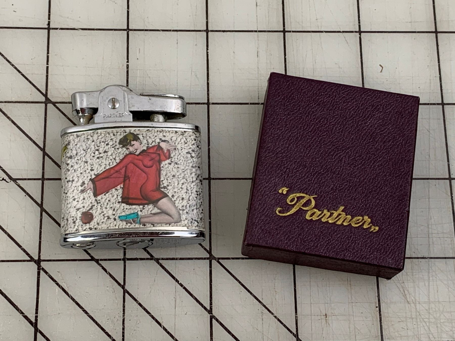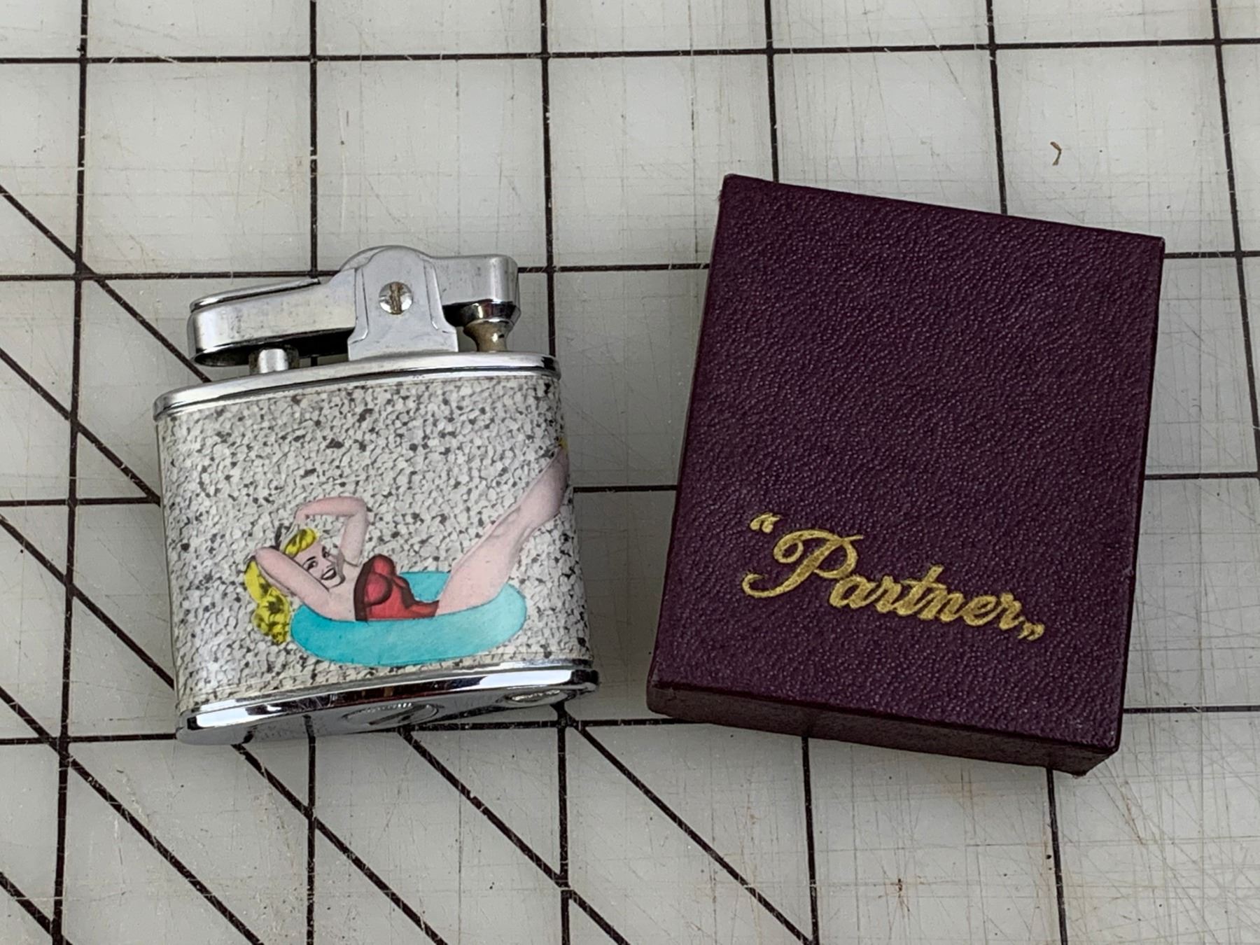 VINTAGE DOUBLE SIDED PINUP GIRL LIGHTER WITH BOX "PARTNER"
