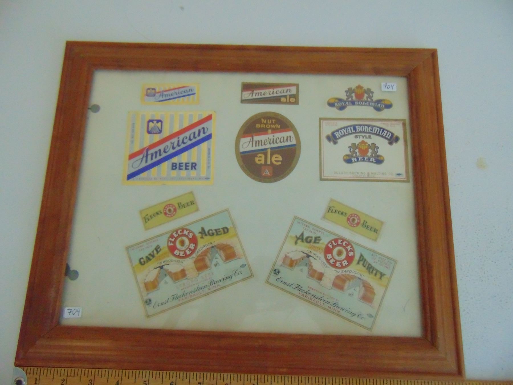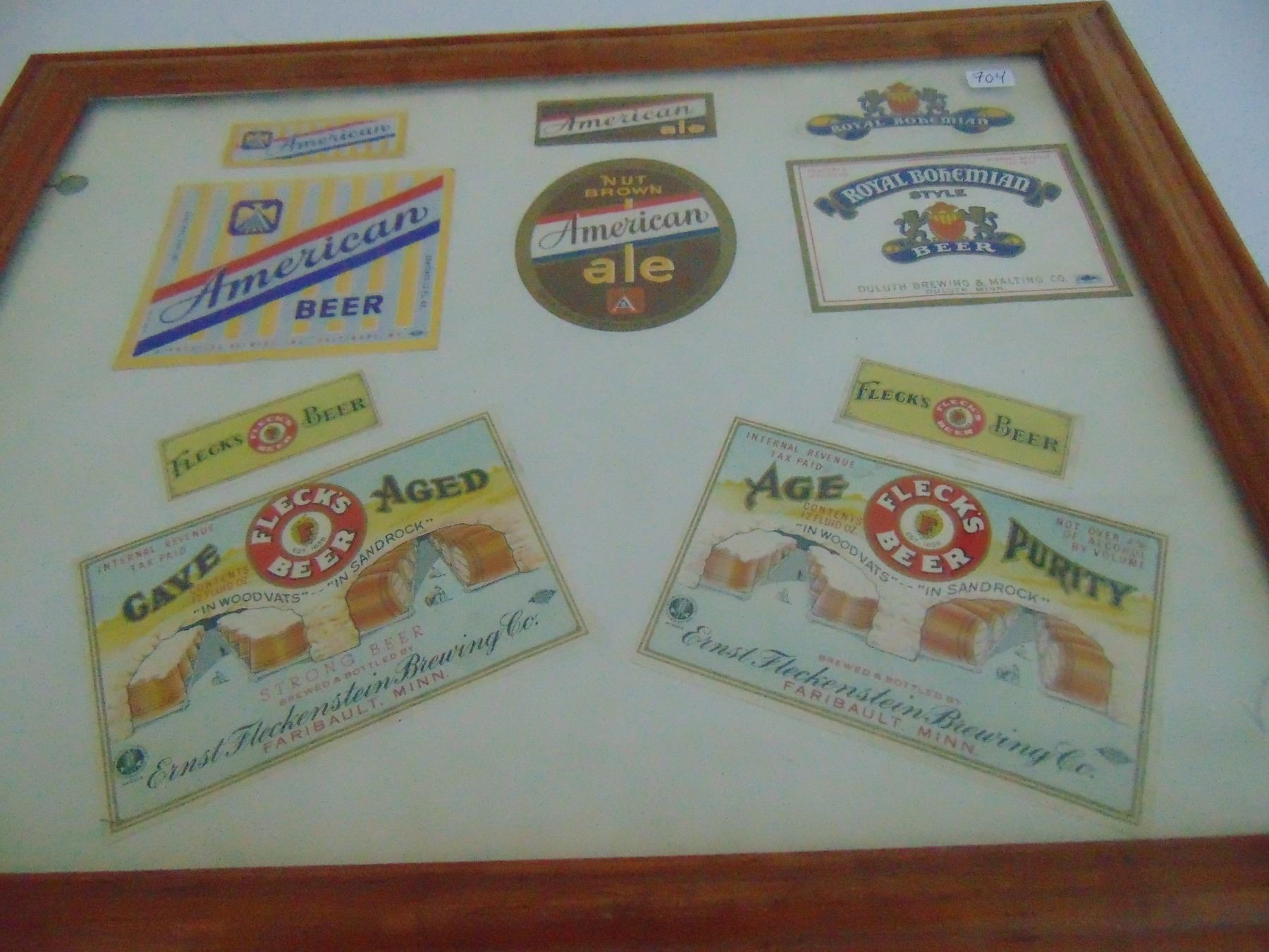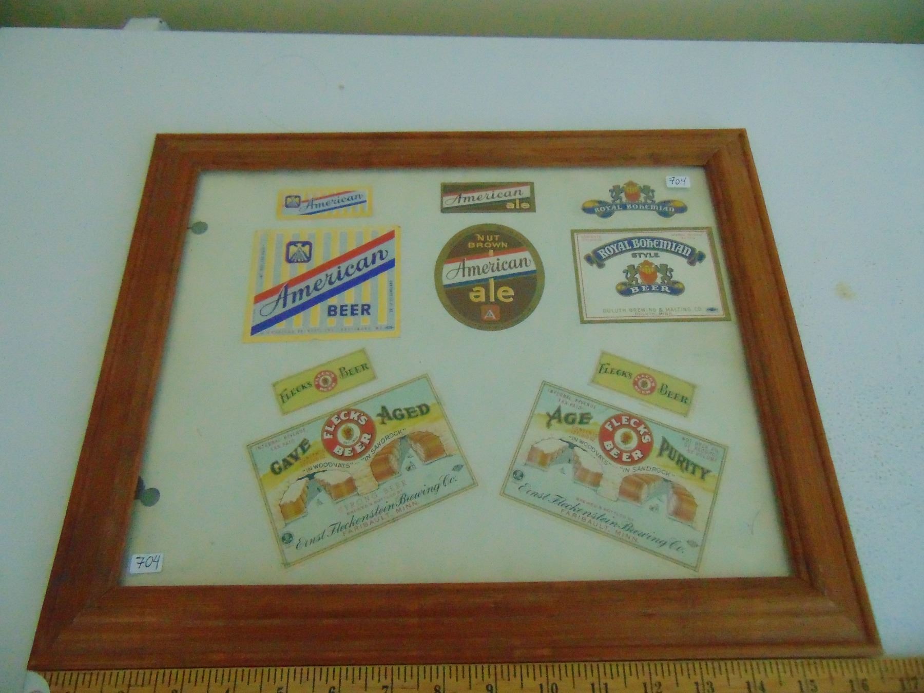 VINTAGE FRAMED BEER BOTTLE LABELS