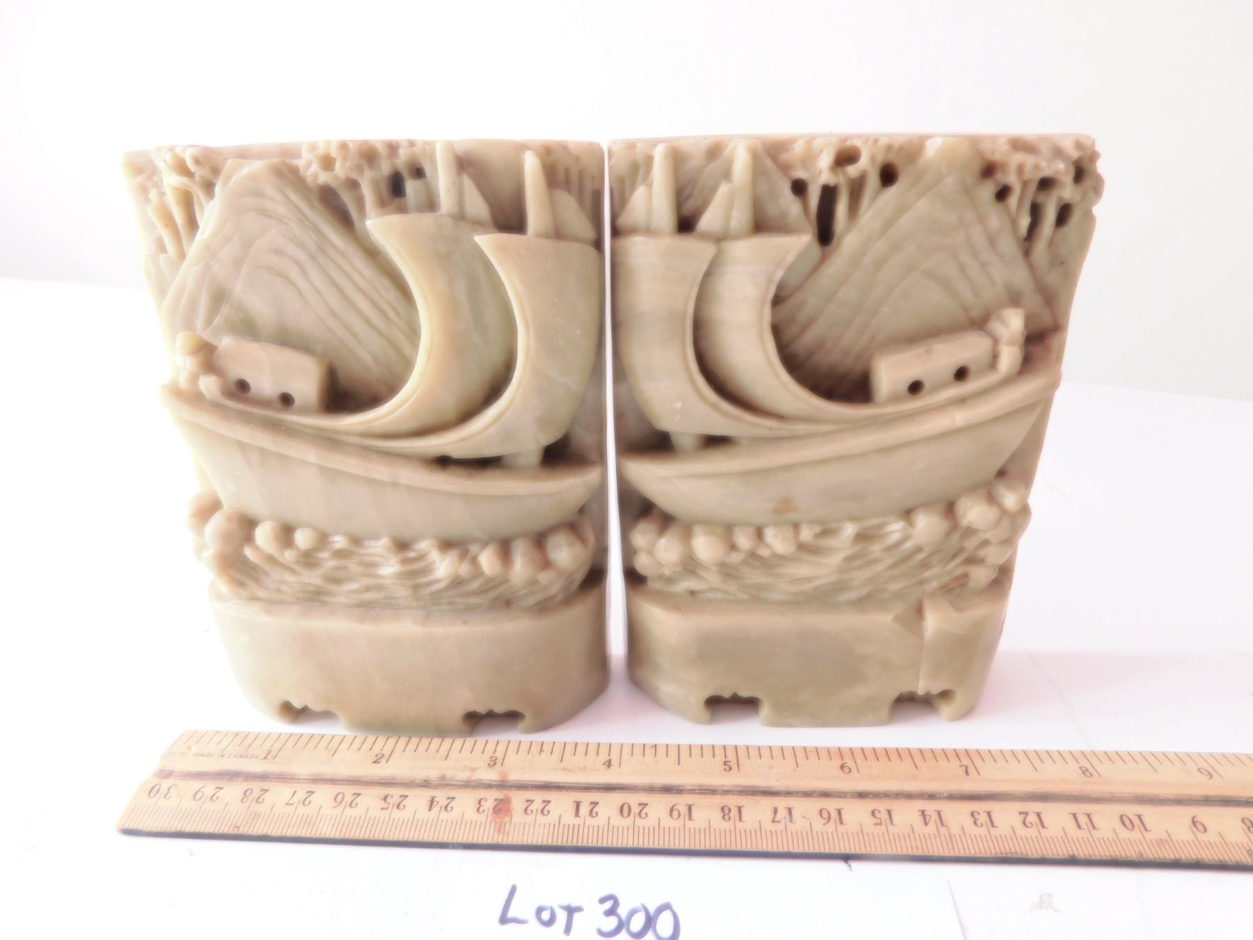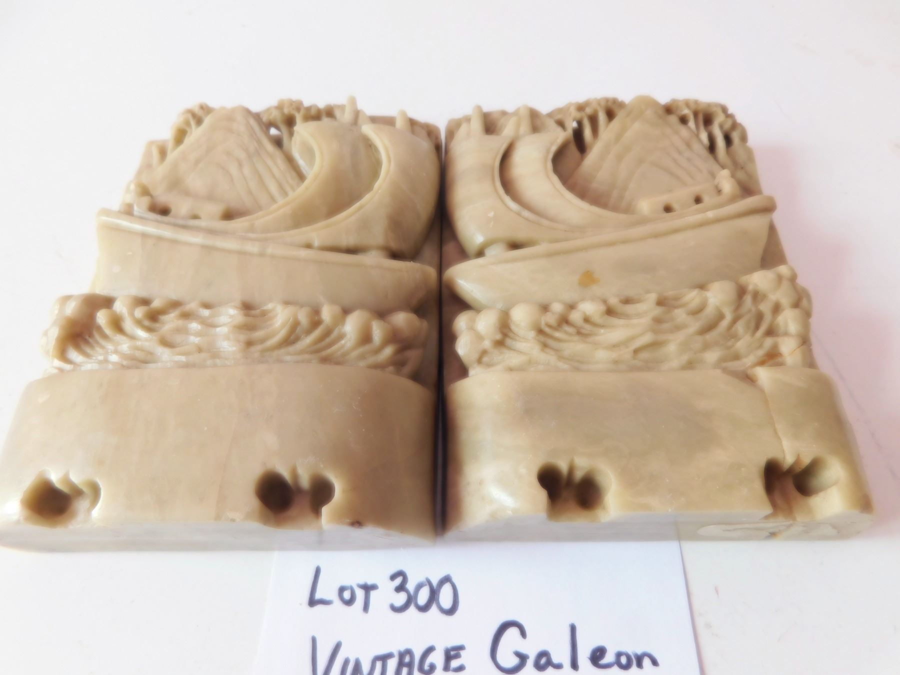 VINTAGE GALEON SHIP SOAPSTONE BOOKENDS