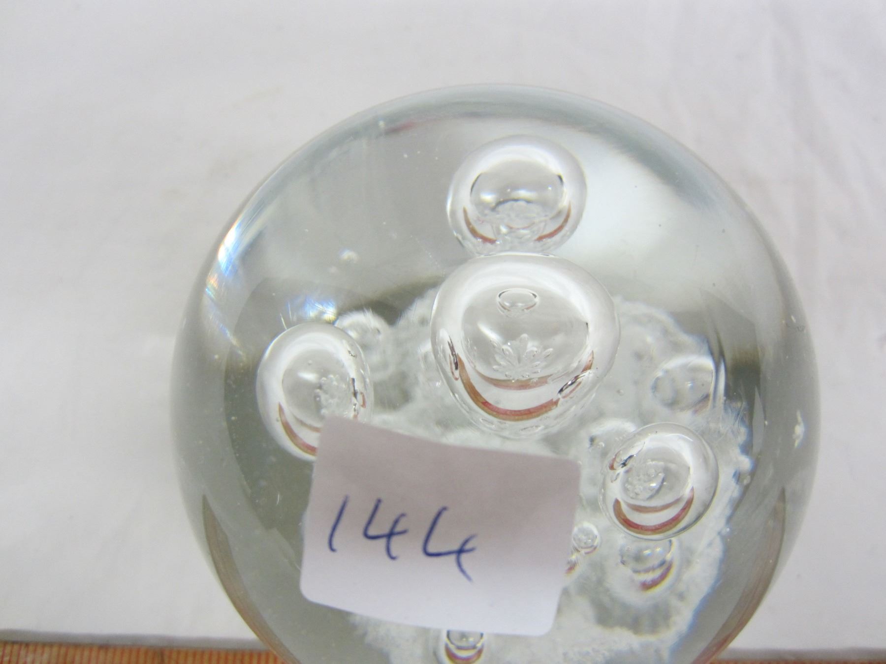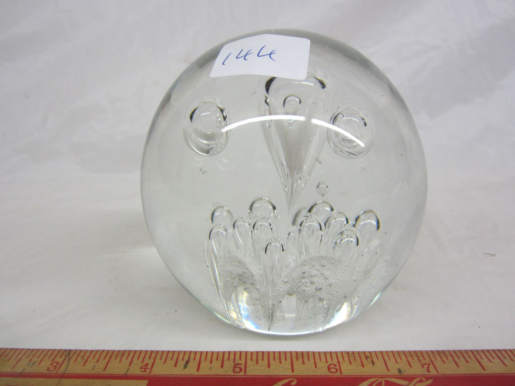VINTAGE GLASS PAPERWEIGHT CLEAR WITH BUBBLES