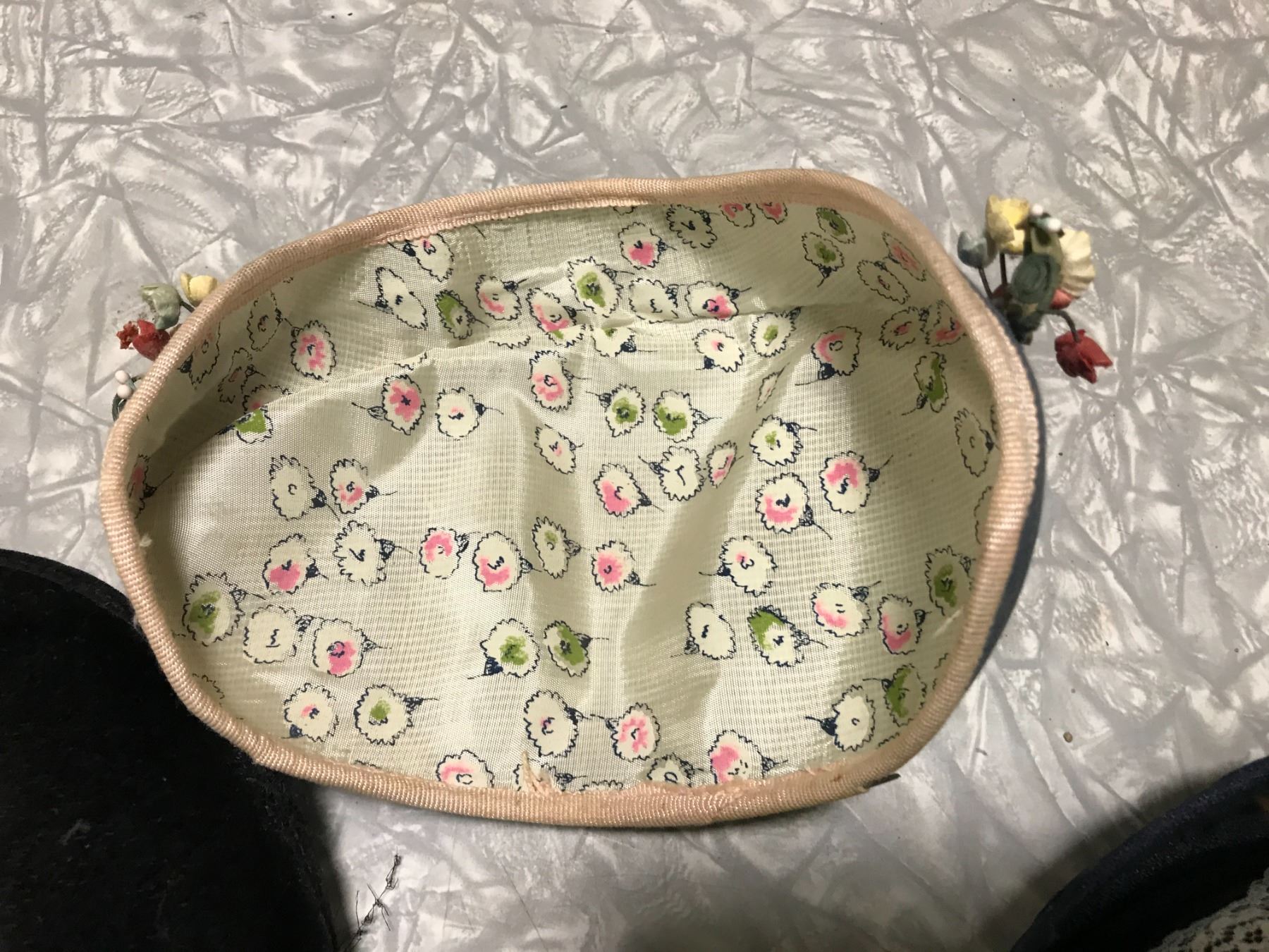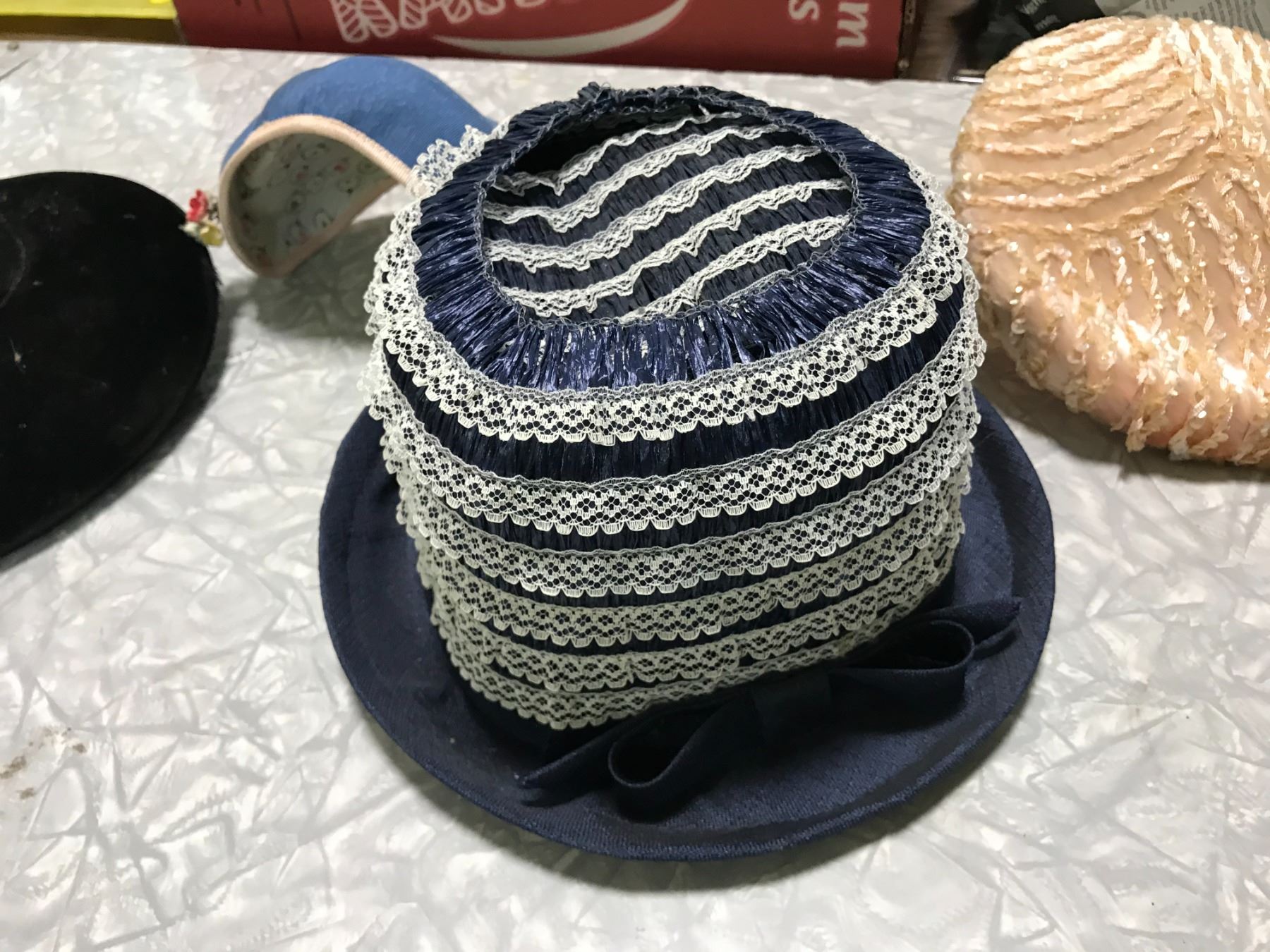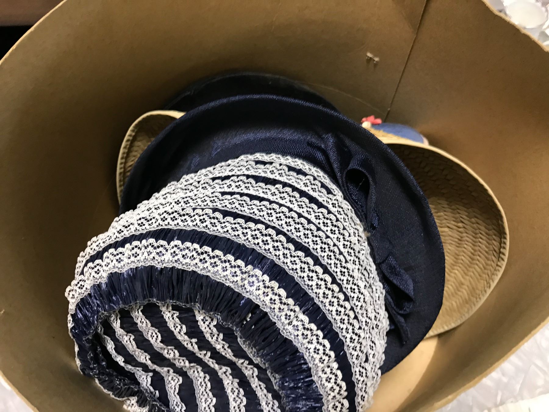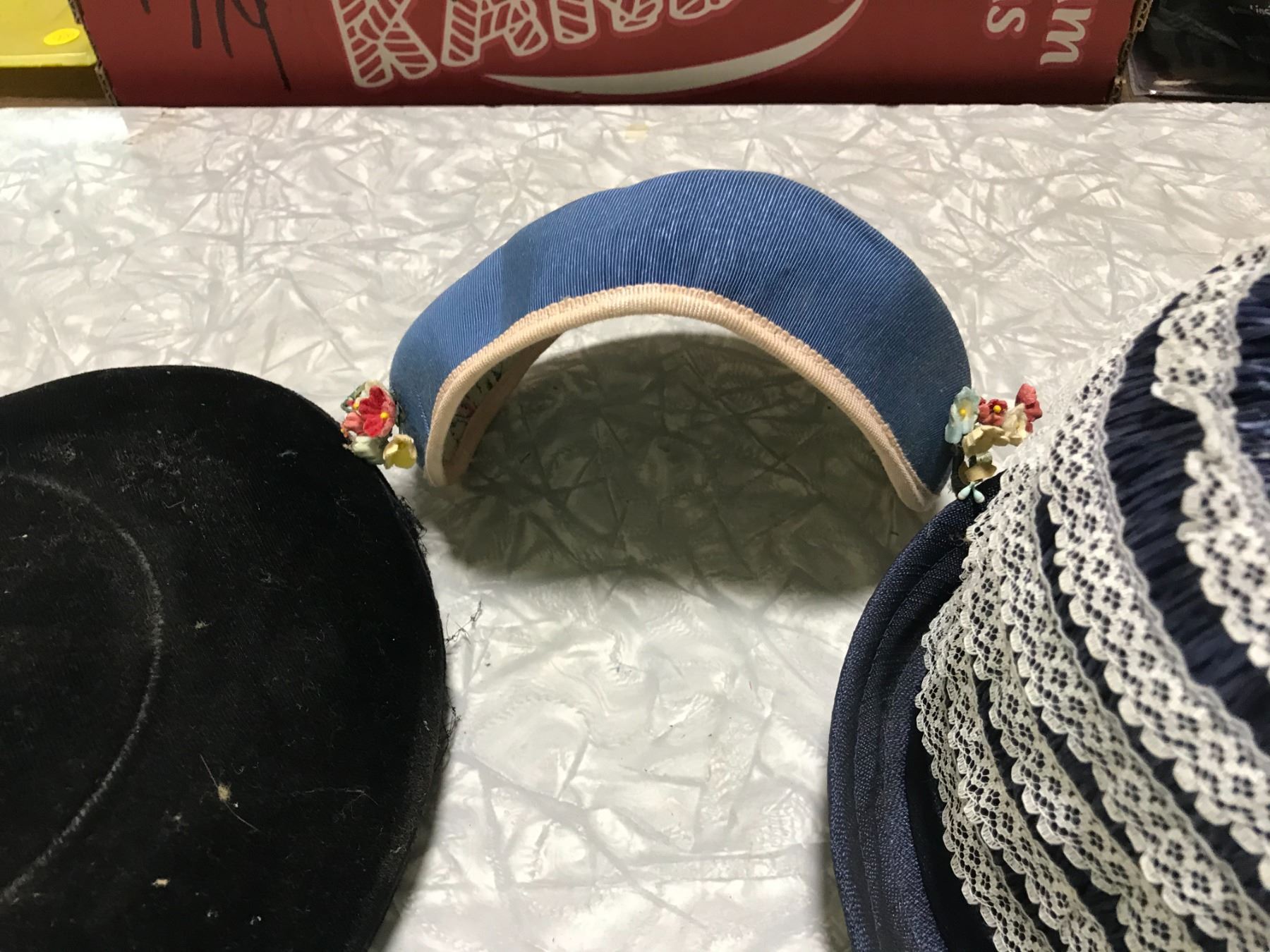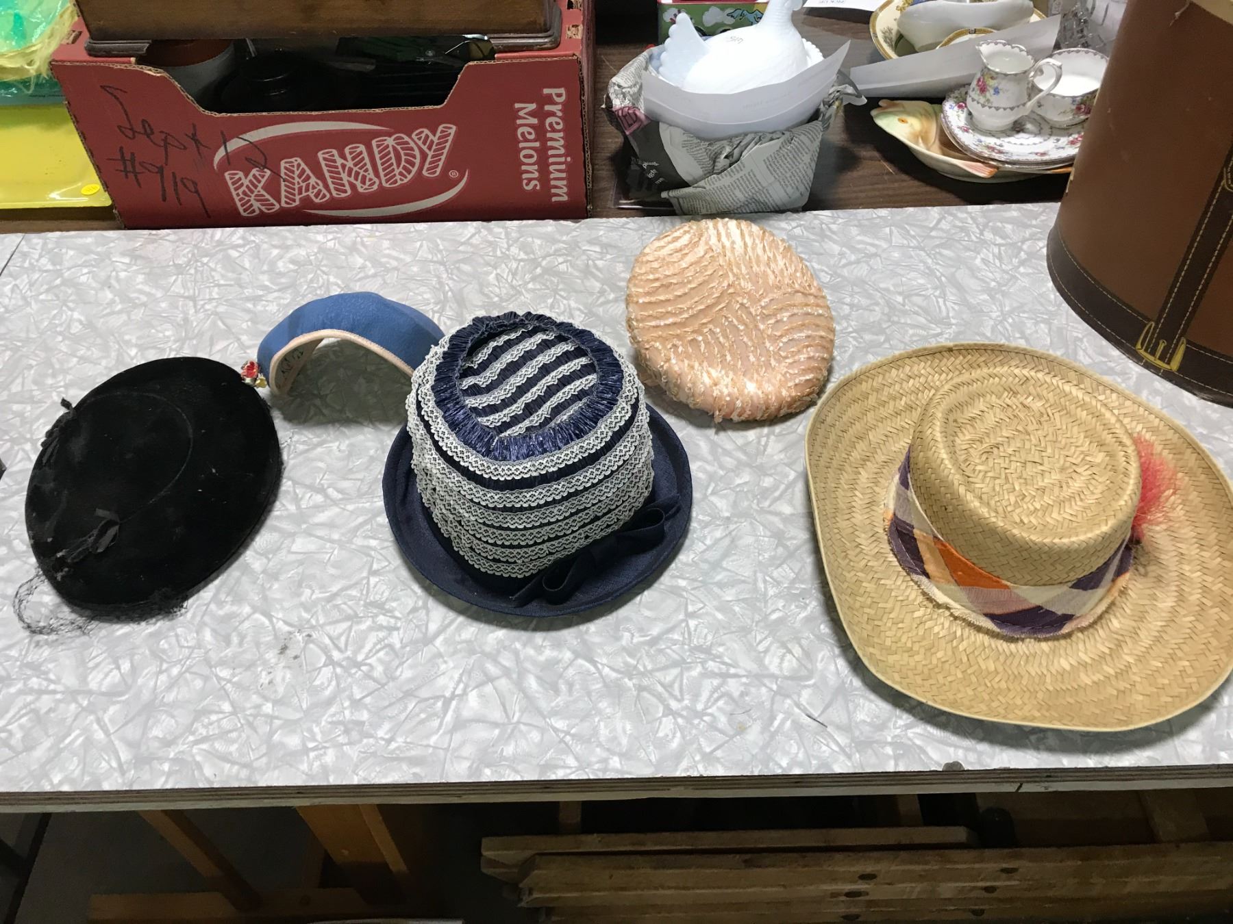 VINTAGE HAT BOX W/ 5 VINTAGE HATS + GIRDLE