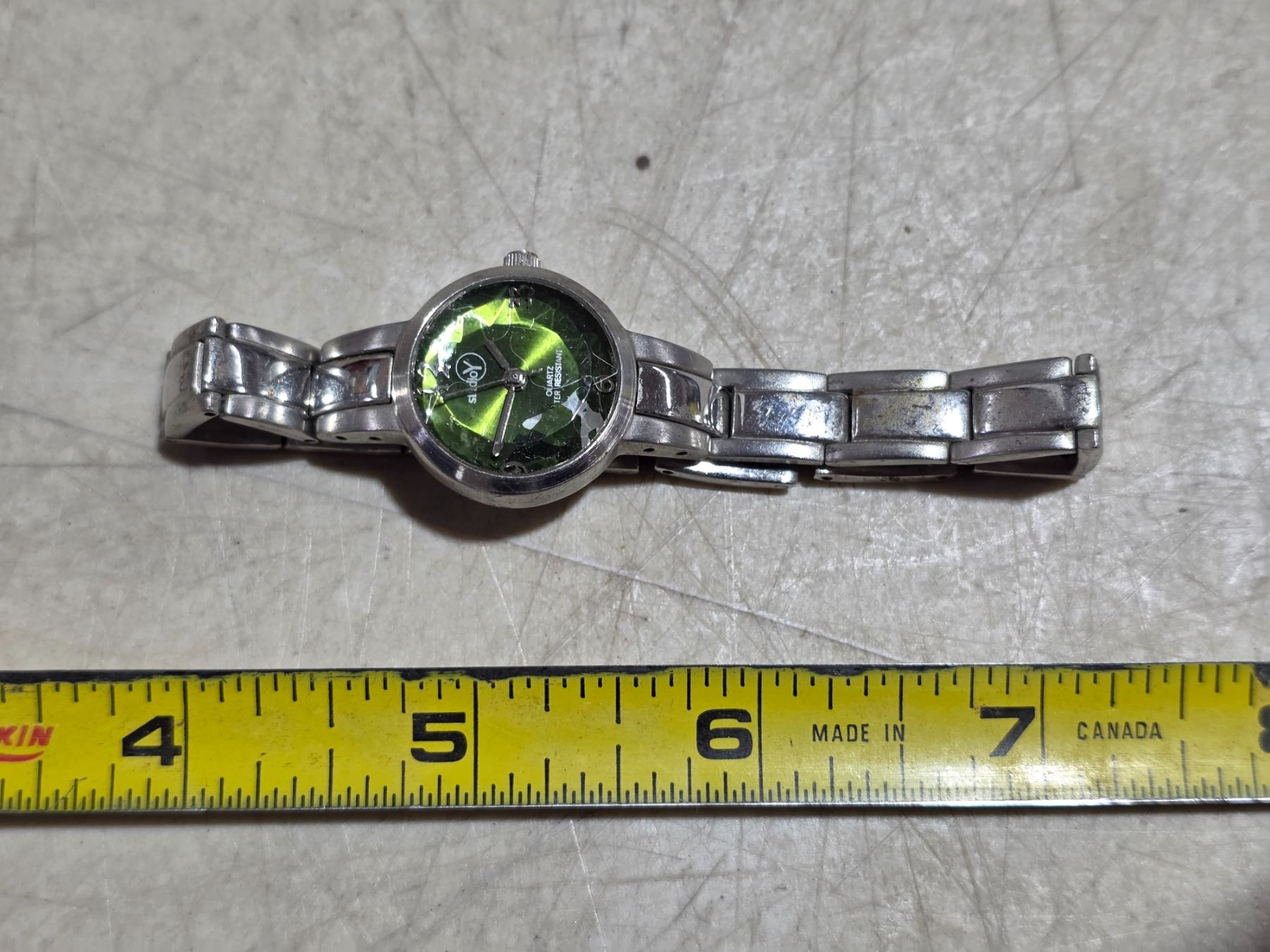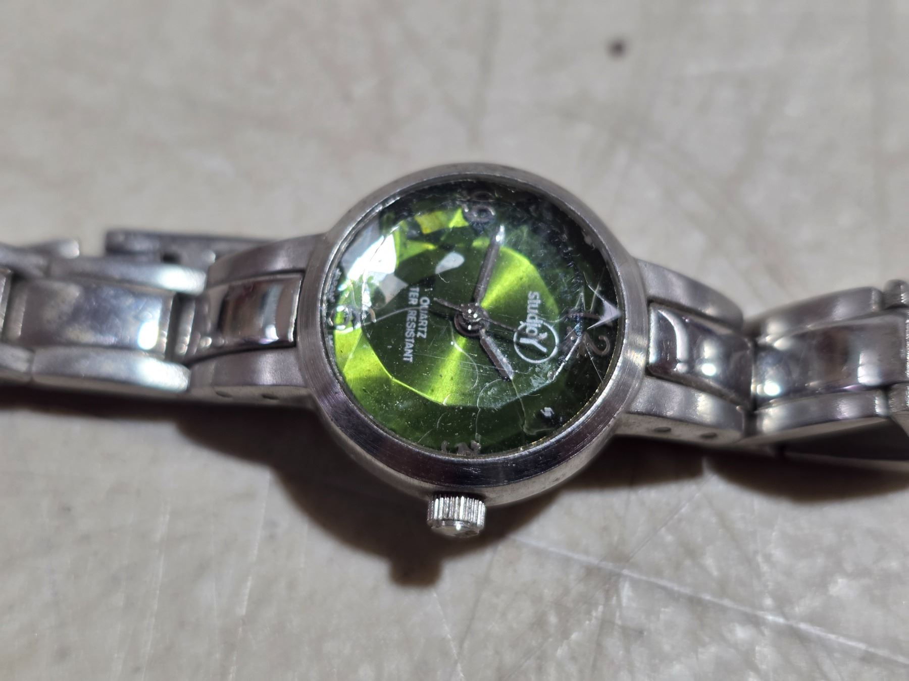 VINTAGE LADIES STUDIO X QTZ WATCH, NEW BATT, RUNS, NICE GREEN DIAL