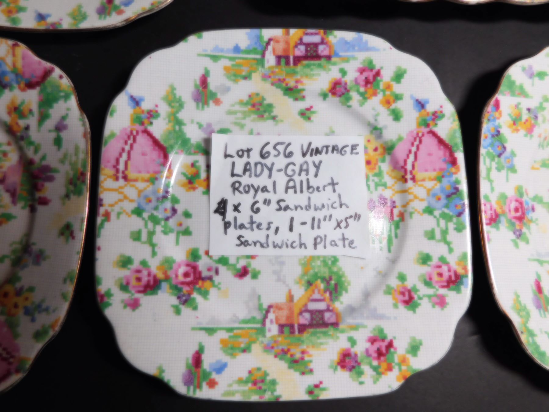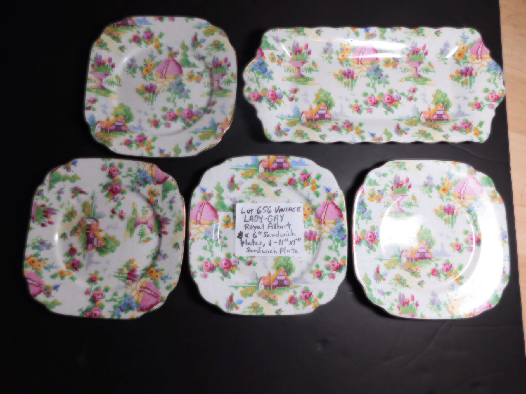 VINTAGE LADY GAY ROYAL ALBERT DISHES SANDWICH PLATES AS SHOWN