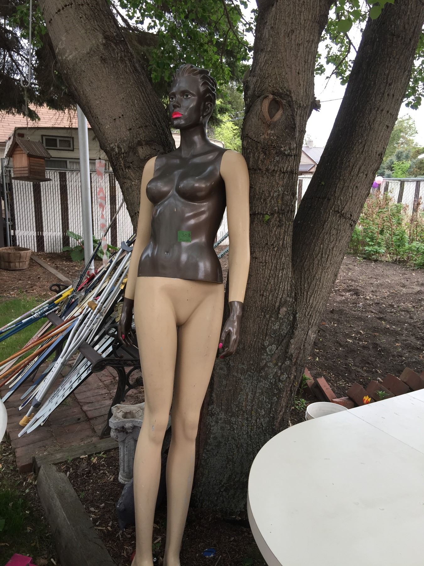 VINTAGE MANEQUIN/ INCHES TALL/ HAS SOME FLAWS/ COMES WITH GLASS FLOOR STAND