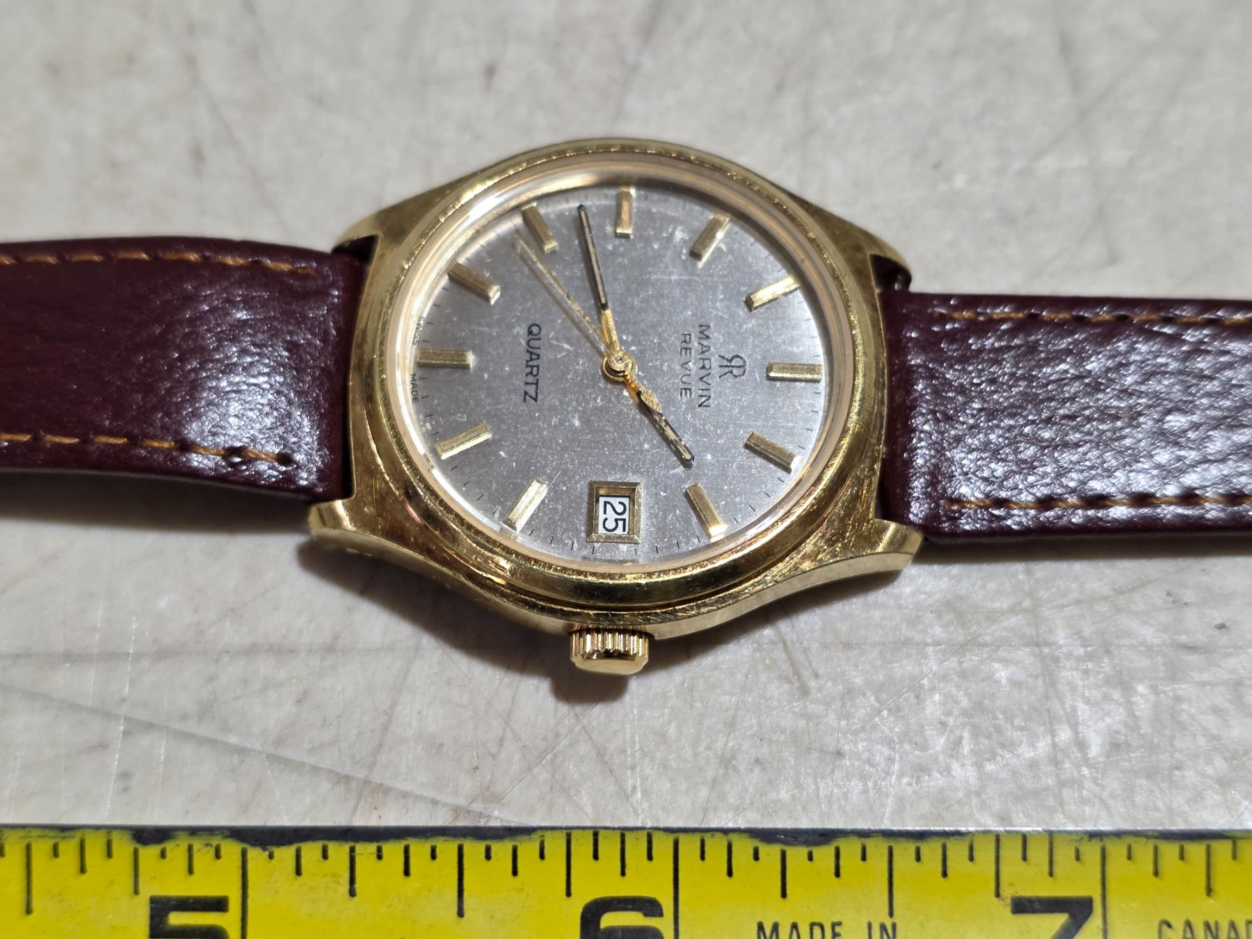 VINTAGE MARVIN REVUE QTZ, DATE @3, NEW BATT, RUNS
