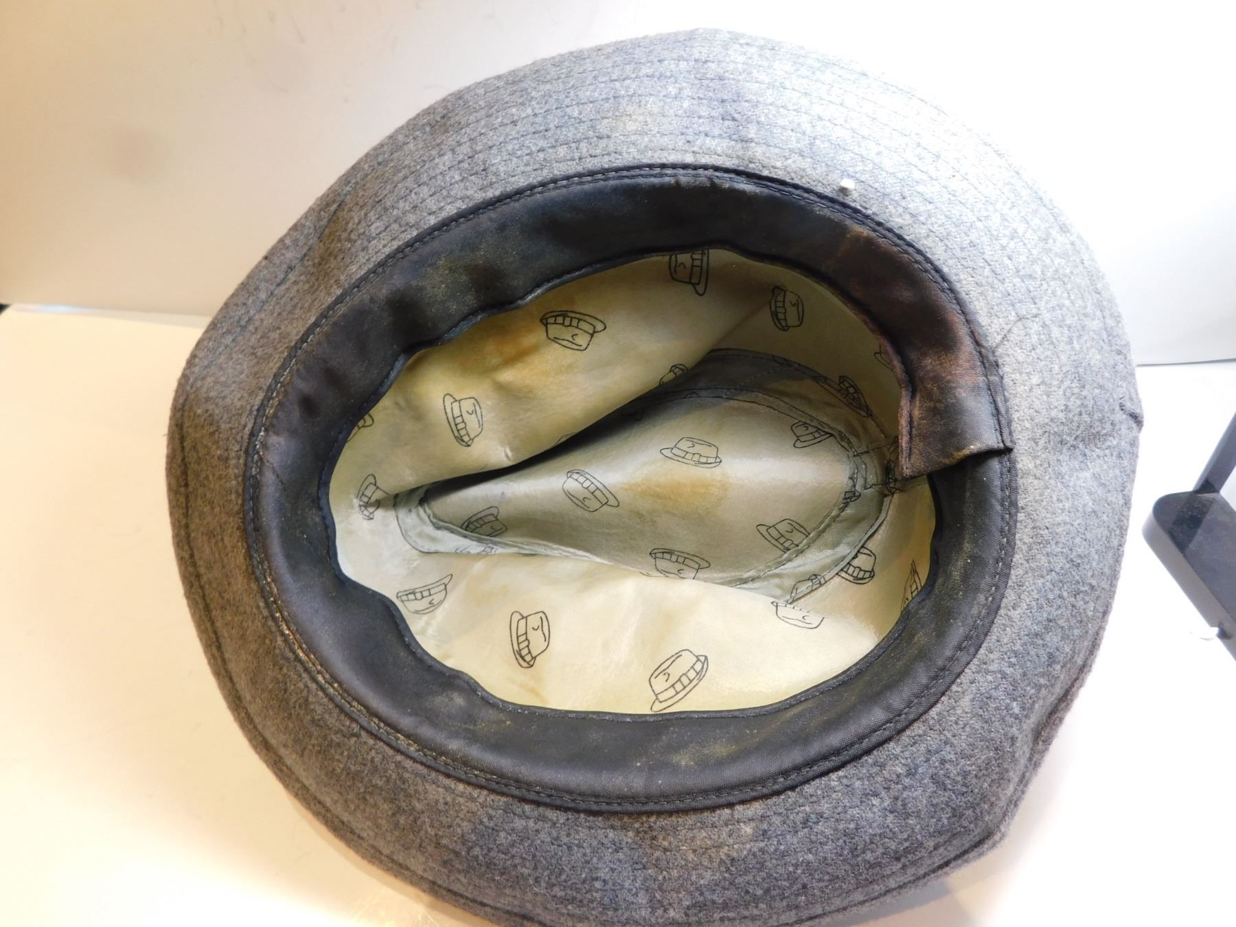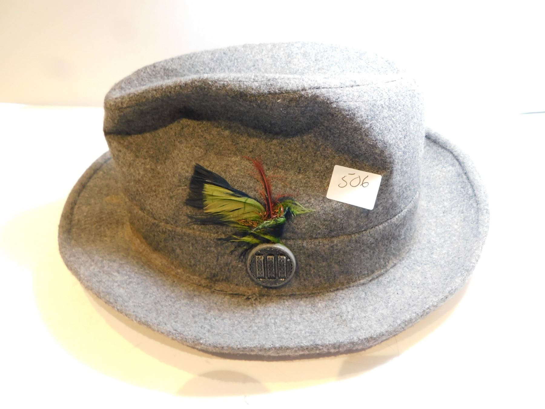 VINTAGE MEN’S HAT WITH FEATHER ON SIDE GREY