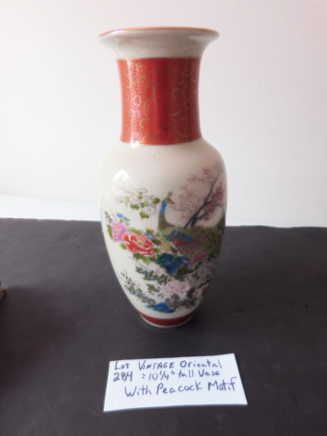 VINTAGE ORIGINAL 10 ¼” ORIENTAL PEACOCK MOTIF VASE