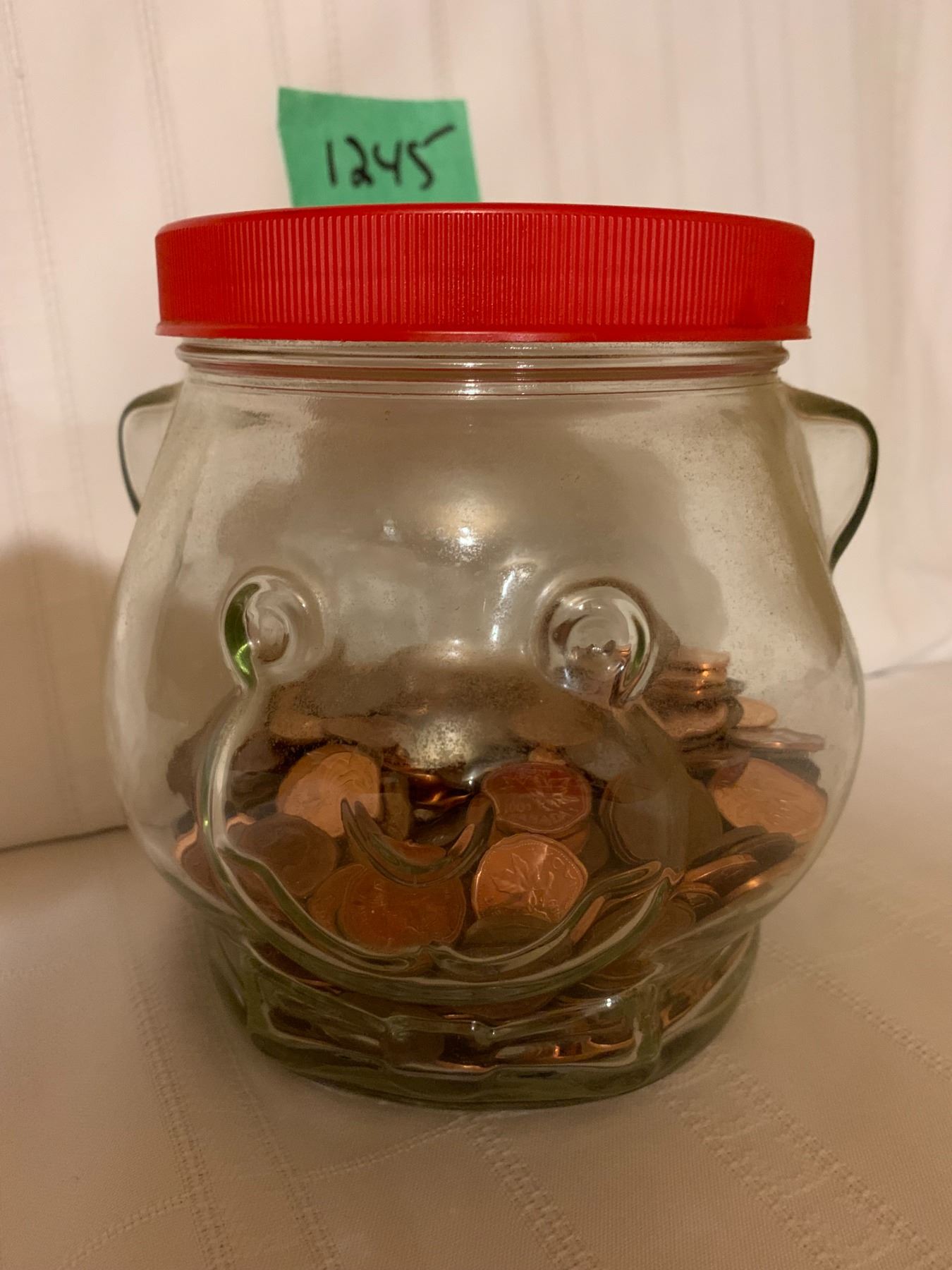 VINTAGE PEANUT BUTTER JAR 1989 WITH PENNIES