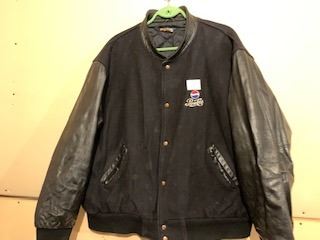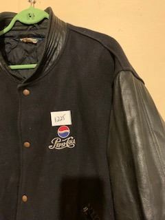VINTAGE PEPSI BOMBER JACKET WITH BLACK LEATHER SLEEVES SIZEE XL
