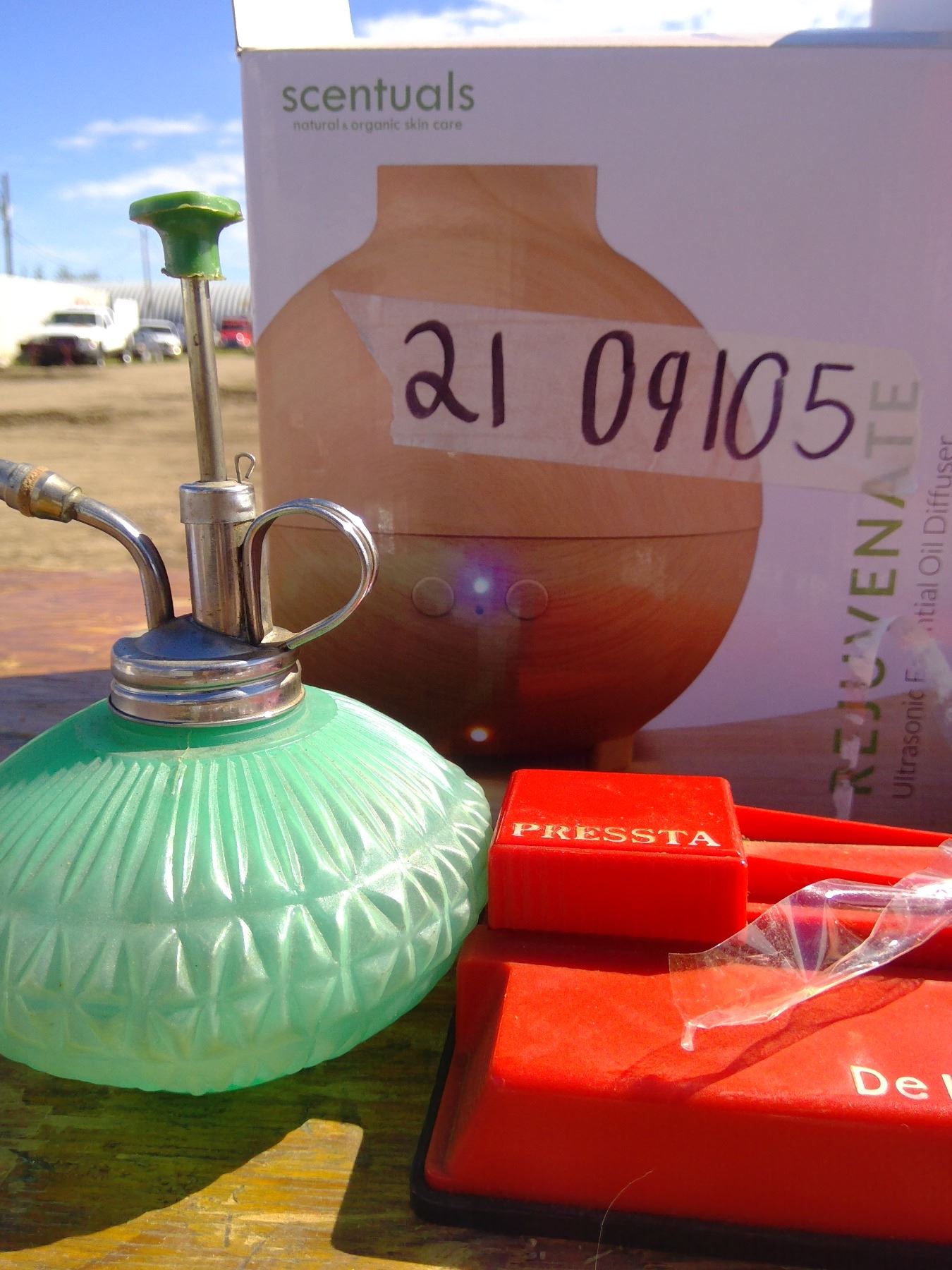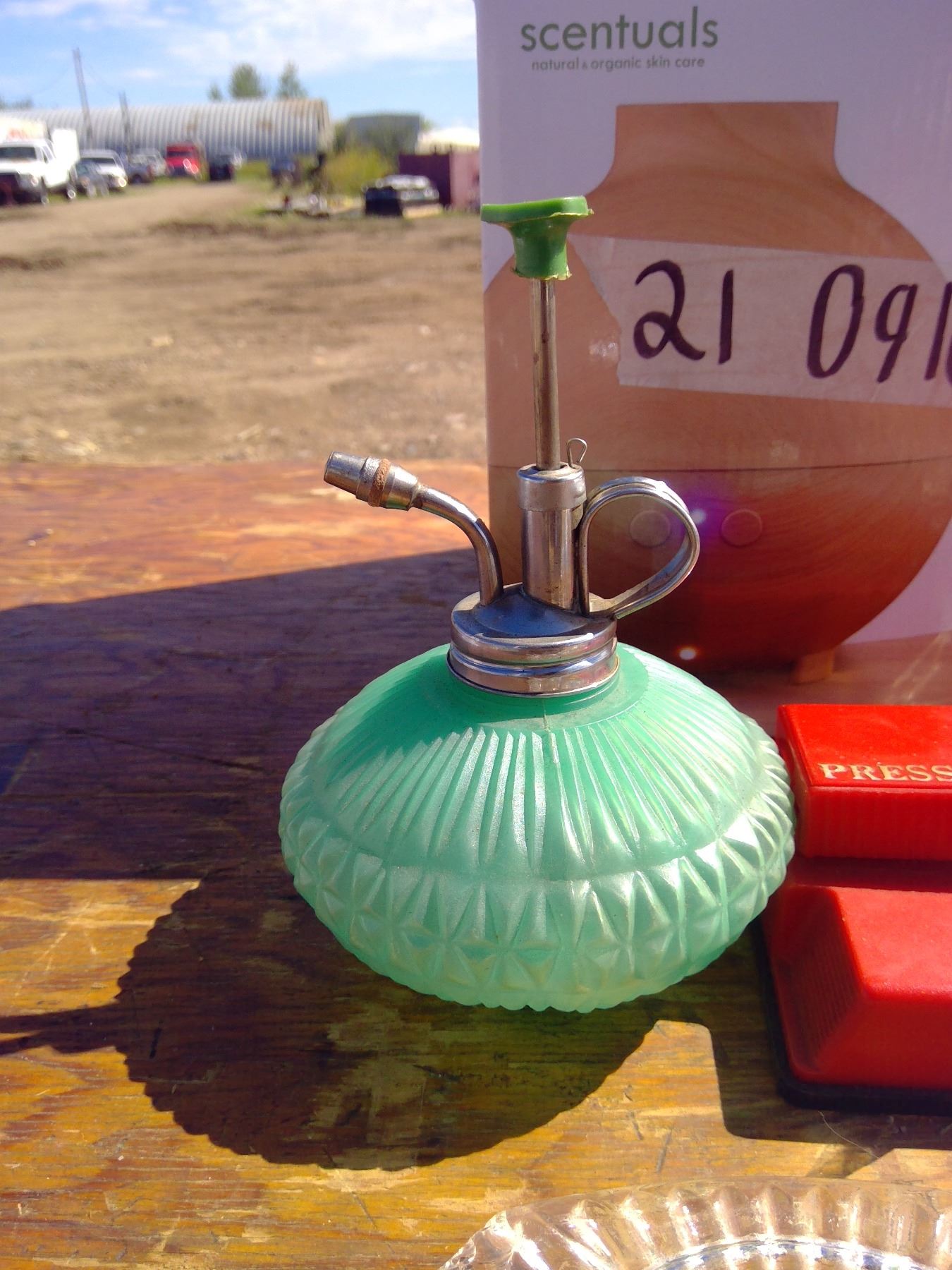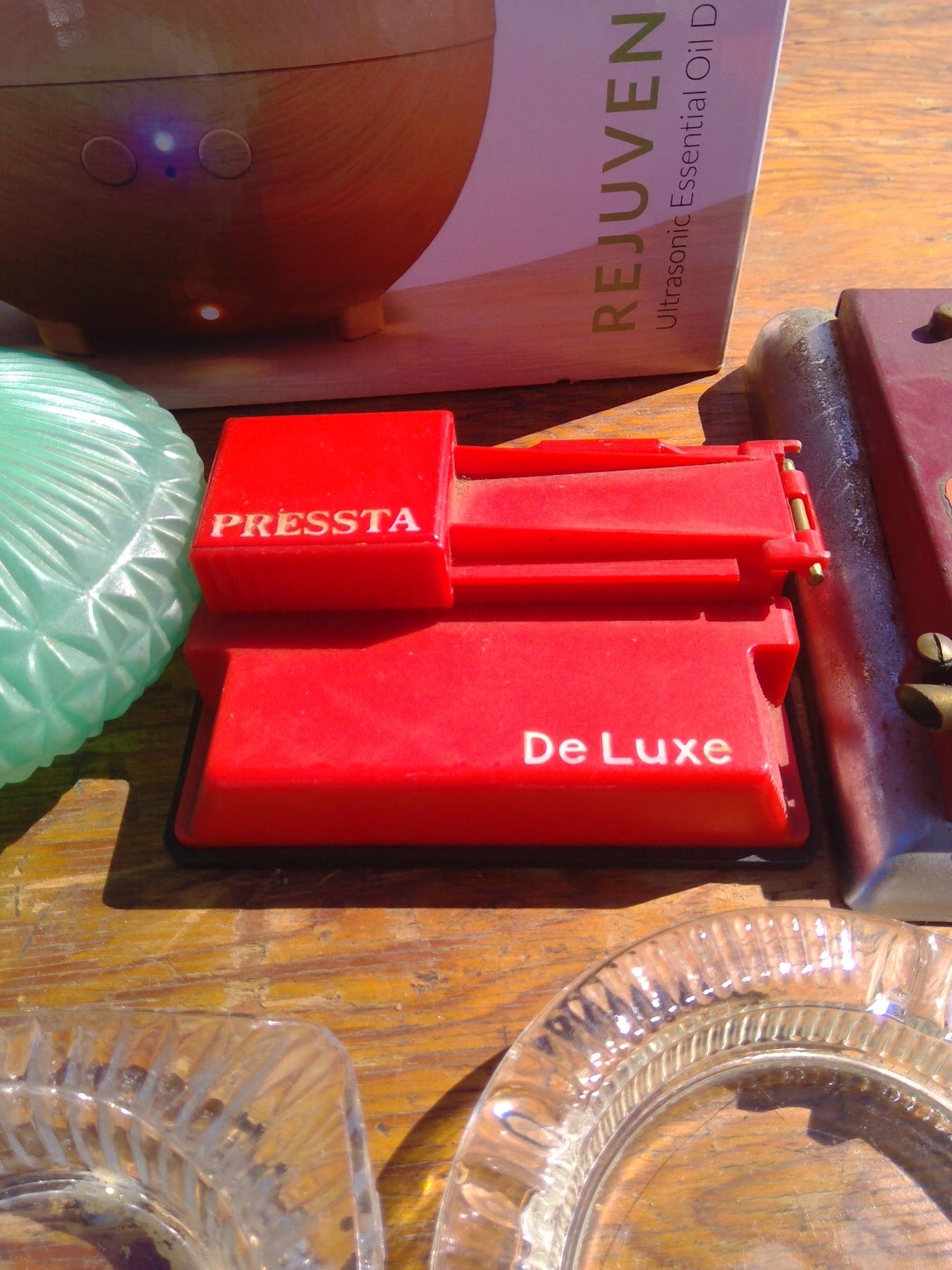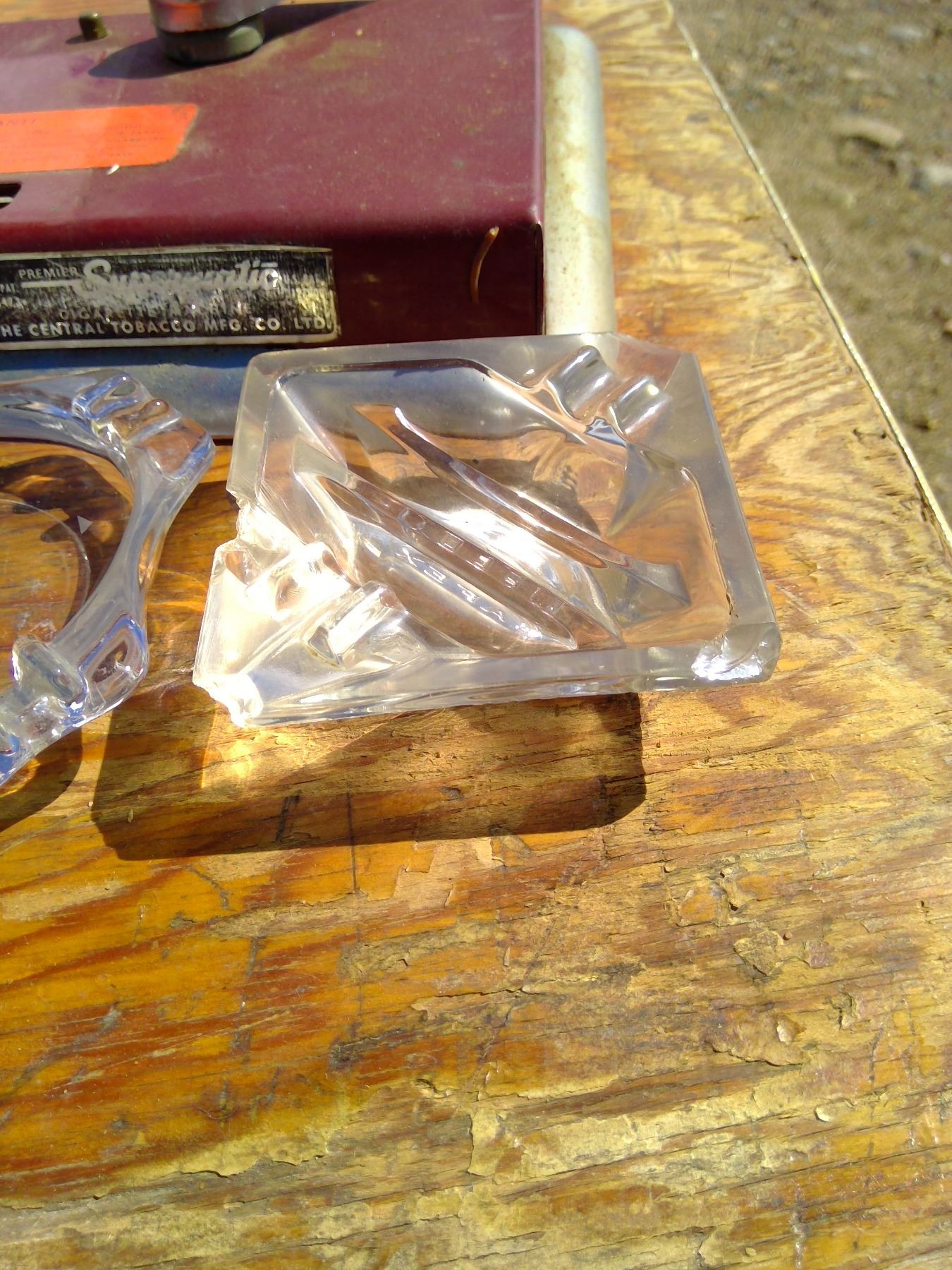 VINTAGE PERFUME BOTTLE + ASHTRAYS + VINTAGE SMOKE ROLLER