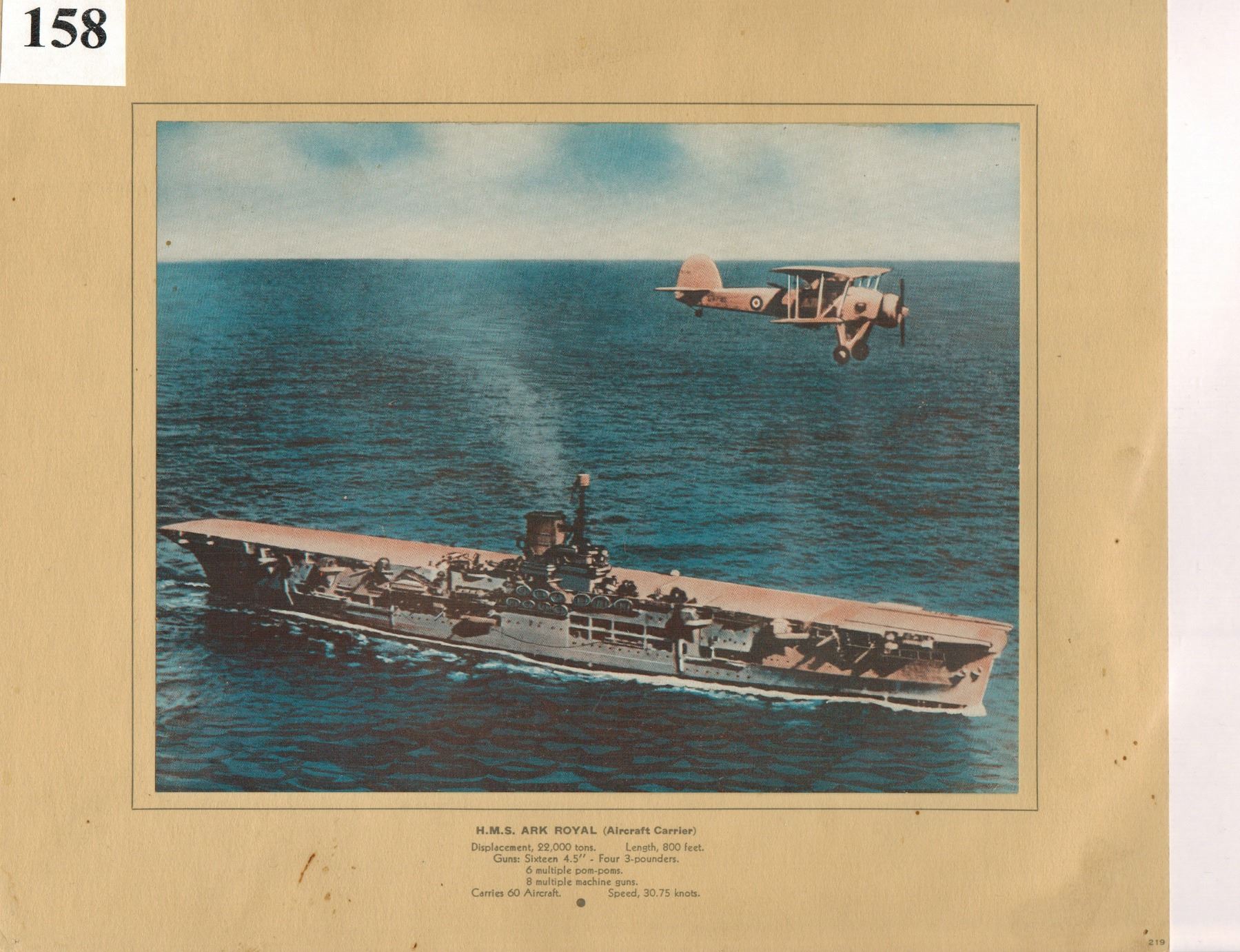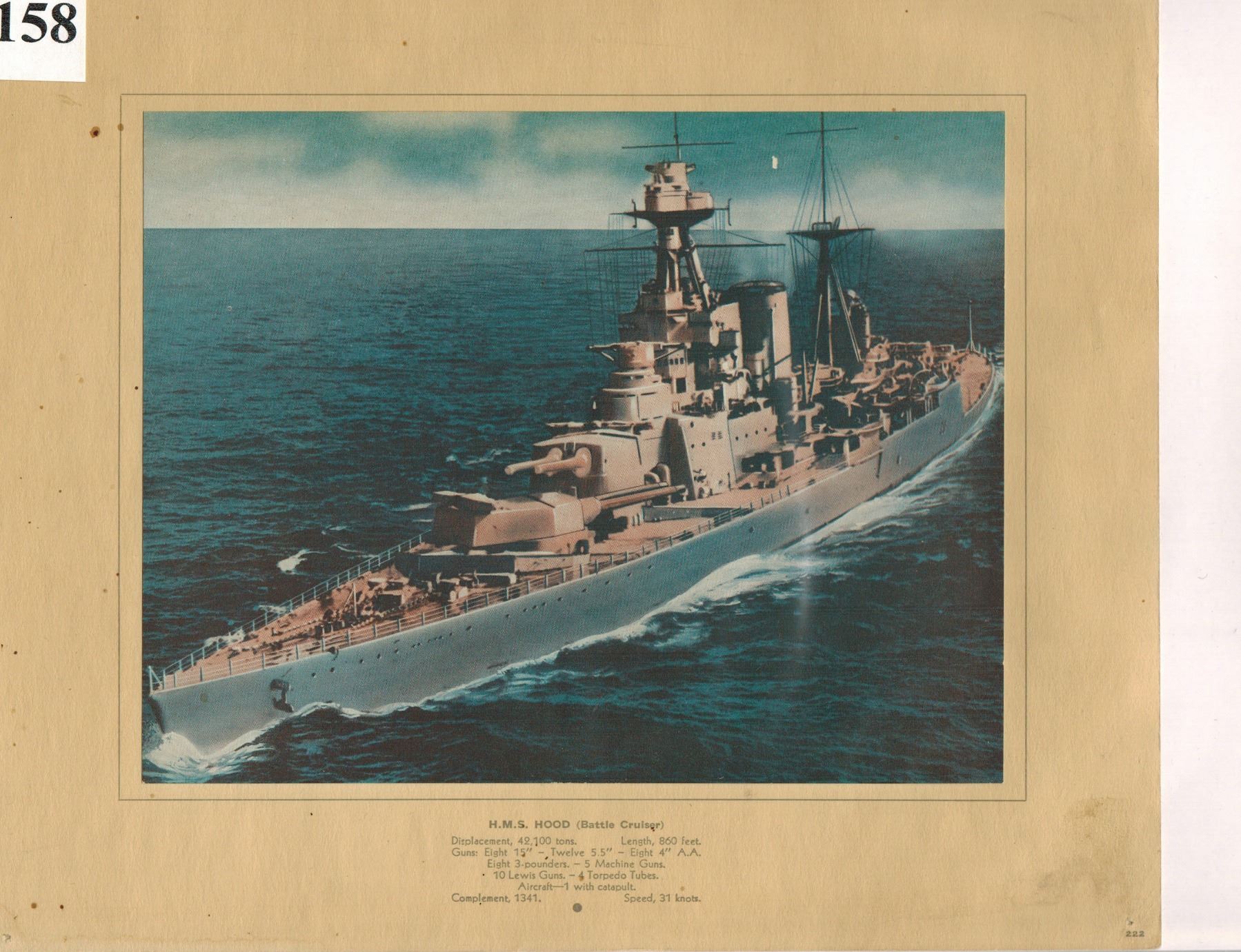 VINTAGE PRINTS - H.M.S. ARK ROYAL & H.M.S. HOOD (BOTH SUNK IN WW II ) - 8 1/2'' X 10"