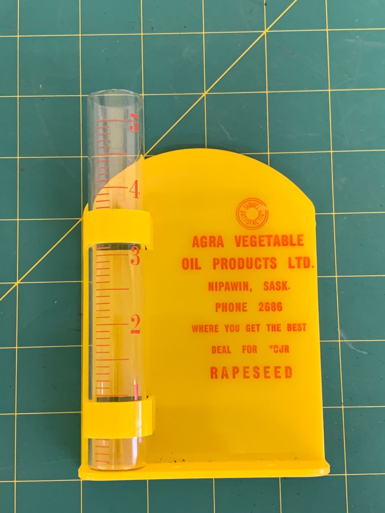 VINTAGE RAPESEED RAIN GAUGE NIPAWIN SASK